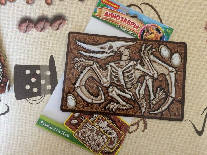 Мне кажется, что эти наклейки лучше всего подойдут деткам 3-4лет, дочка 6 лет собрала подобную картинку (трицератопса) за несколько минут.