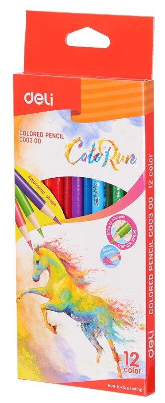 Карандаши цветные "ColoRun" (12 цветов трехгранные) (EC00300); DELI, 2018