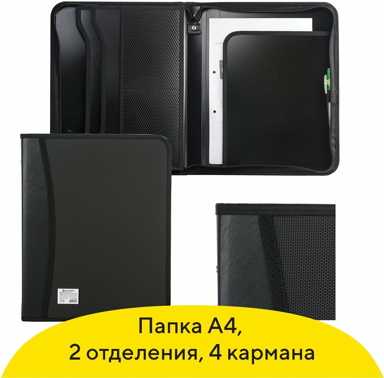 Папка на молнии пластиковая (А4 2 отделения 4 кармана) (225166); Brauberg, 2018