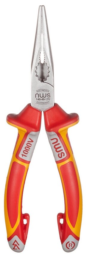 - Изолированные рукоятки из двух материалов, позволяющие безопасно работать с проводами под напряжением до 1000 В (удовлетворяют требованиям EN60900, IEC/CEI900, VDE0680)