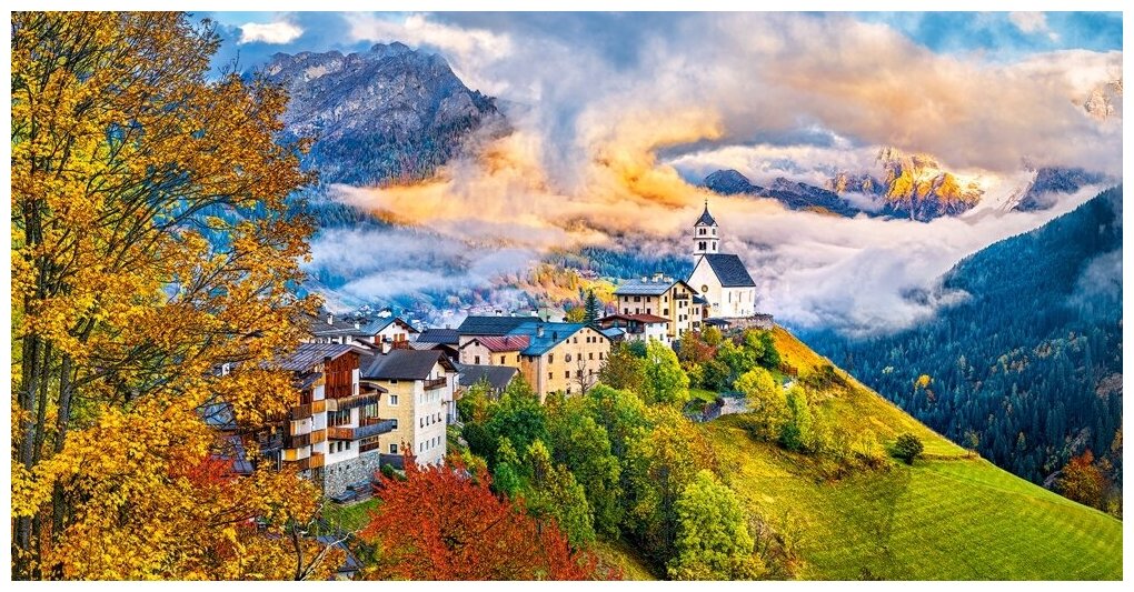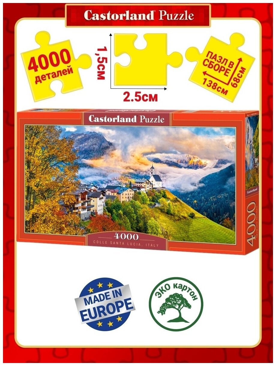 Пазлы с изображением Колле-Санта-Лучия в Италии. Число деталей: 4000 штук. Размер коробки: 46.8х27.2х5 см. Размер головоломки: 138х68 см.