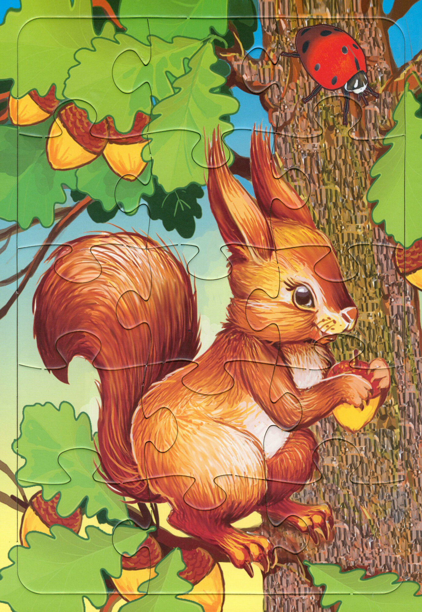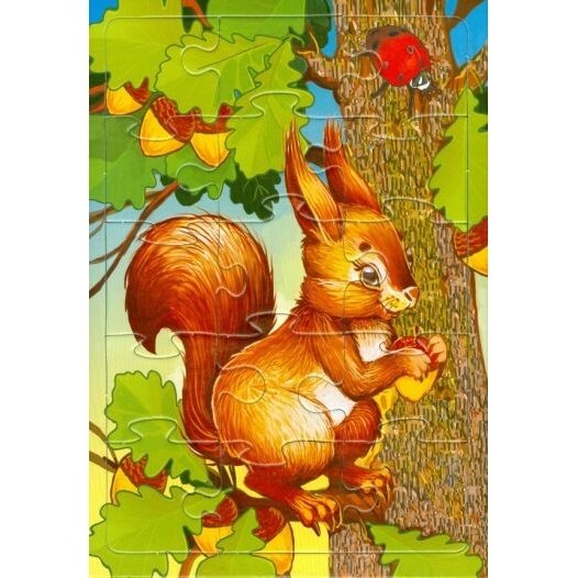 Пазл "Белочка" выполнен в ярких красках. Подходит для маленьких детей., для развития мелкой моторики. Хорошо, что он сделан как бы в рамке. ребёнок не теряет картинку. Картон из чего он сделан не имеет стороннего запаха, трёрдый, его не сразу можно погрысть..