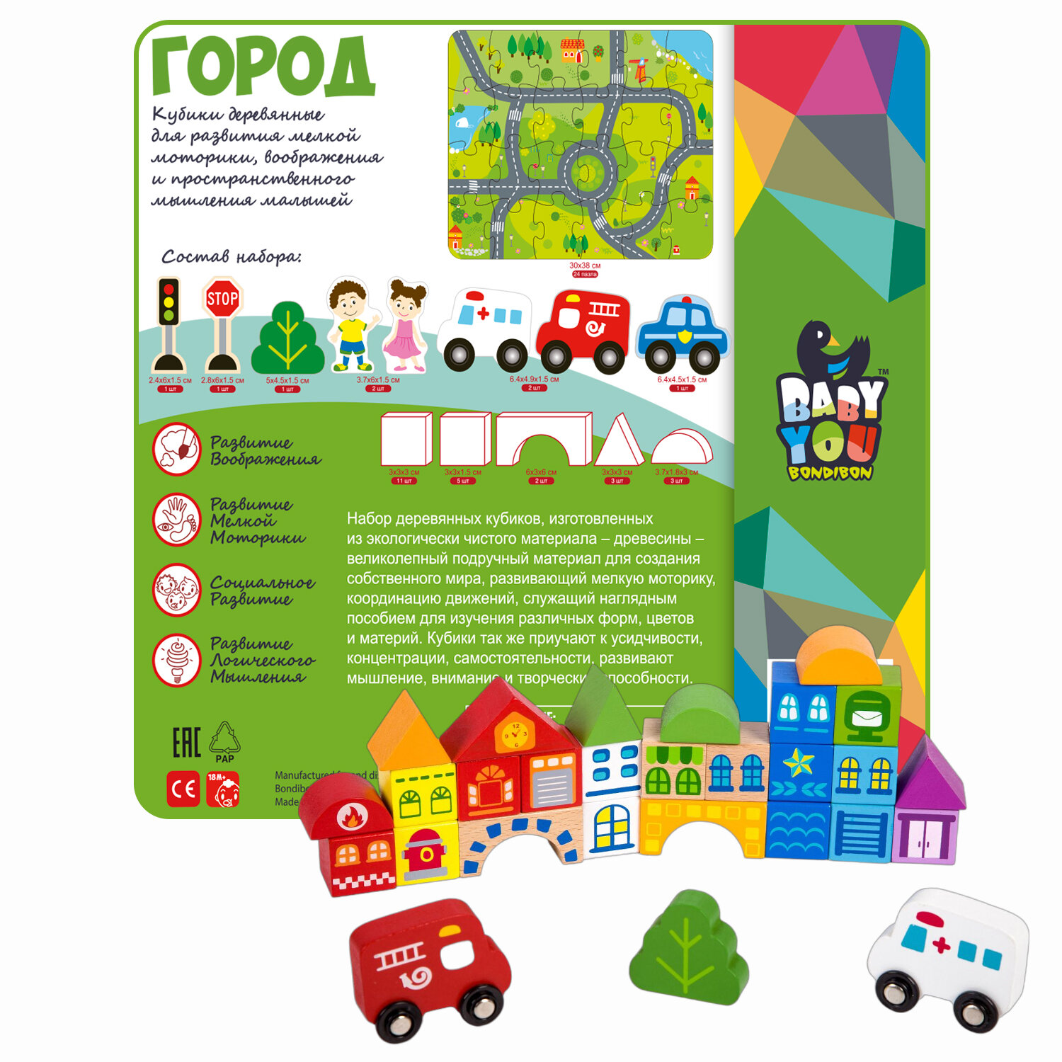 Набор деревянные Кубики "ГОРОД" 57 деталей (TY197/ВВ2382); BONDIBON, 2021