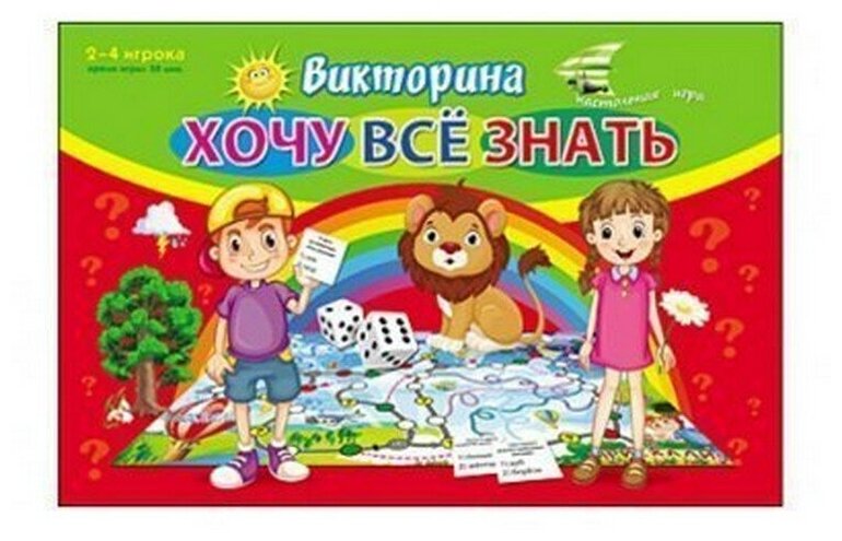 | Комплектация | игровое поле размером; карточки; 4 фишки; 1 кубик; инструкция |