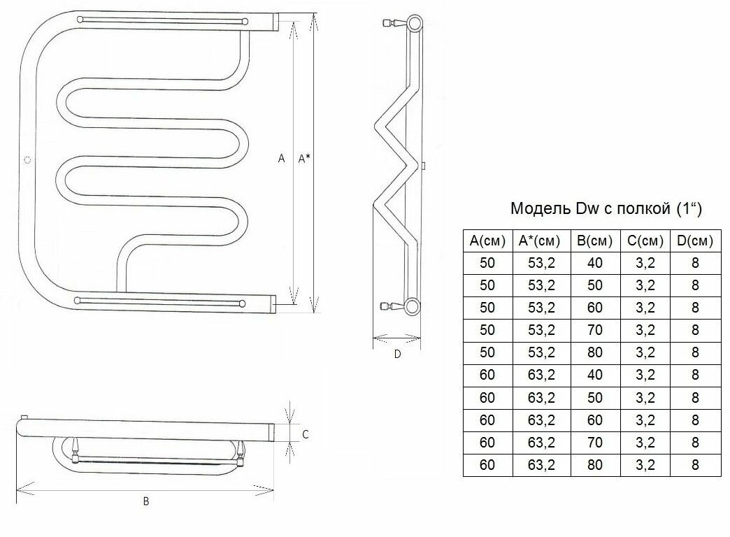 Код производителя: Полотенцесушитель Dw10 с полоч