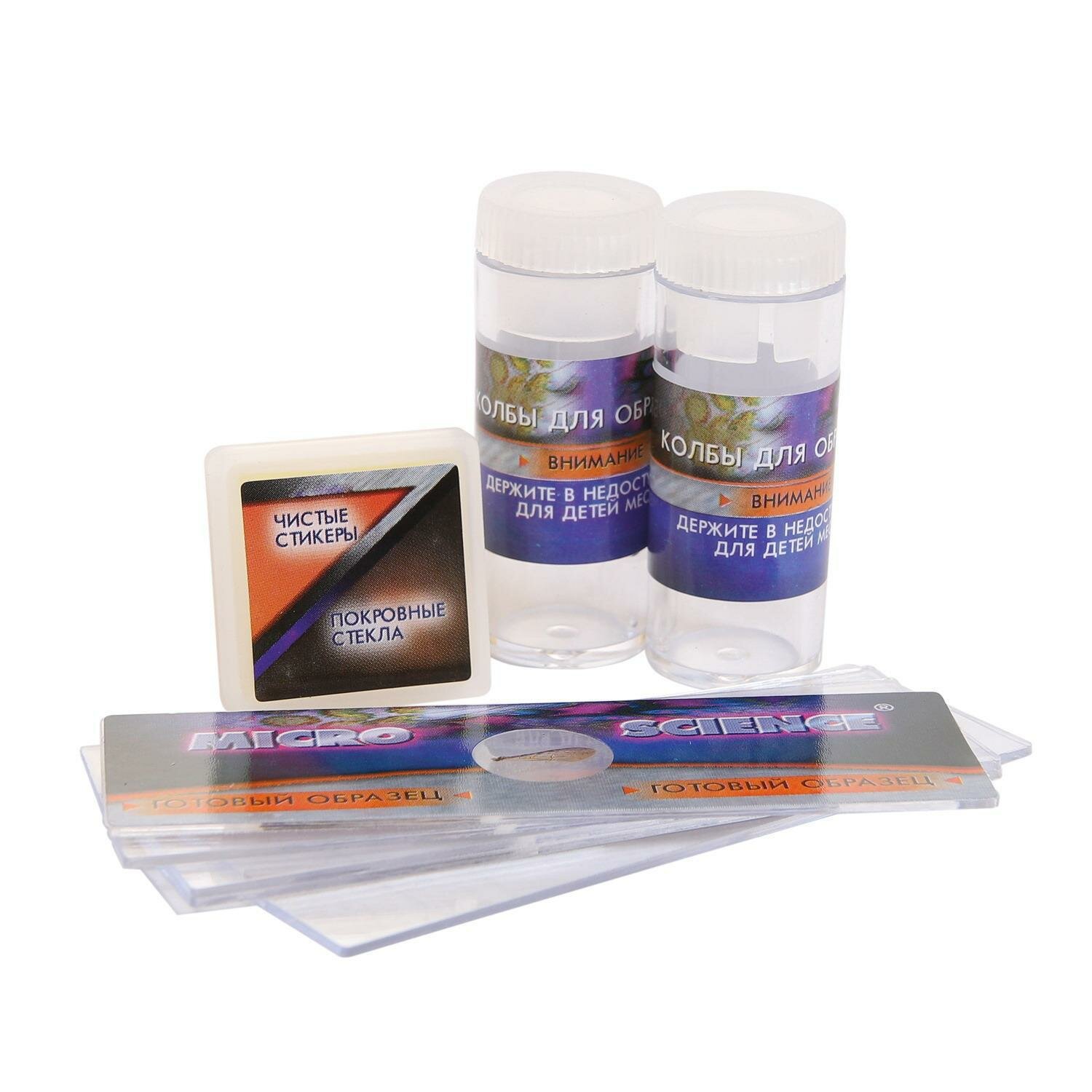 | Комплектация | микроскоп; 5 предметных стекол; 5 покровных стекол; 10 этикеток для заполнения; 2 флакона под реактивы |
