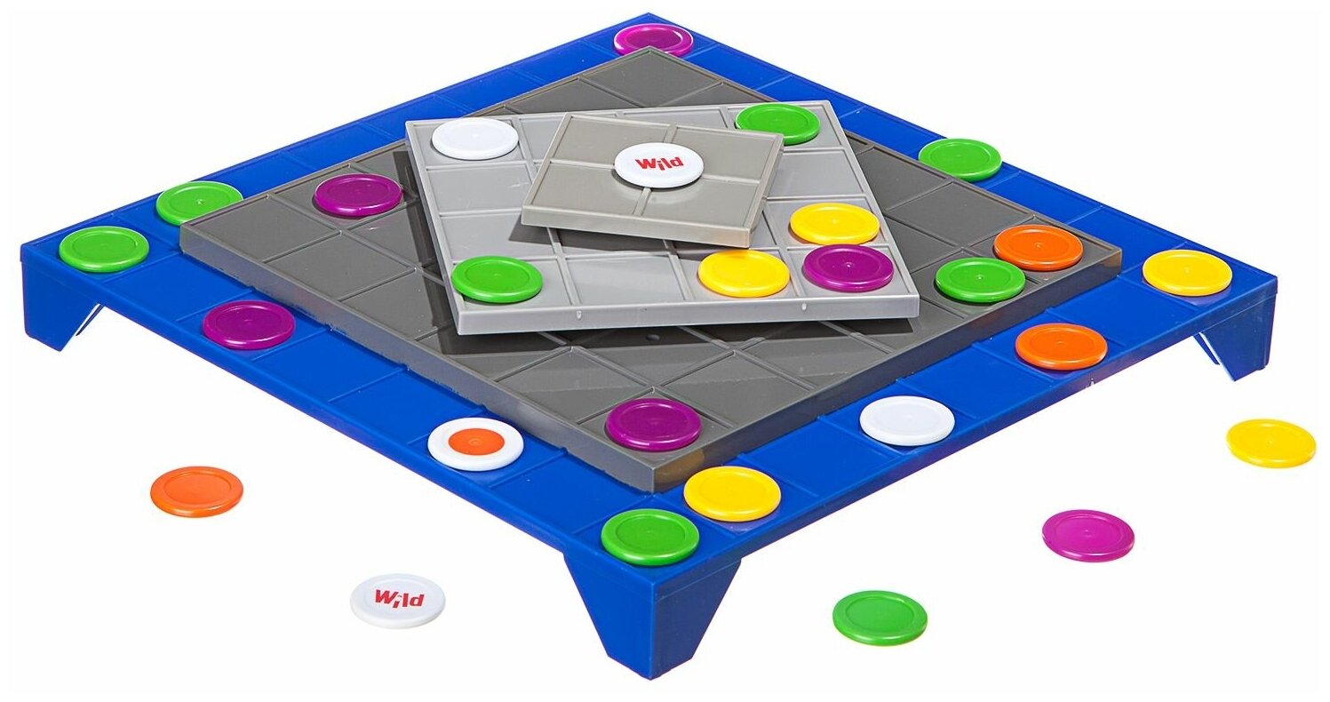 Игра настольная Круг в квадрате - увлекательный способ провести вечер в компании своих родных и друзей. Всем участникам предстоит выкладывать на игровом поле разноцветные фишки в один ряд в любом направлении: по вертикали, горизонтали или диагонали. Победителем становится тот, кто первый соберет такой ряд одного цвета. Поскольку лишь сам игрок будет знать свой цвет, то для запутывания соперников можно блефовать, но помните, что в игре может выпасть коварный жетон с надписью "wild", который существенно перевернет весь ход игры!