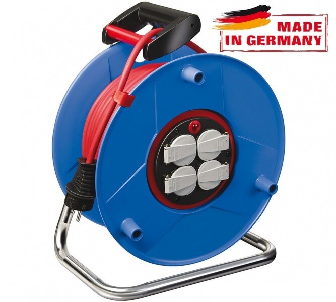 Удлинитель Garant -50м. на катушке. 3 розетки с защитным датчиком от перегрева и перегрузки. Провод ПВХ H05VV-F 3G1,5 для работы в помещениях, барабан ударопрочный пластик, стальная рама. Пыле-влаго защита IP 44. Система Bretec позволяет сматыватьразматывать провод, не отключая электроприборы из сети. Гарантия производителя 3 года.