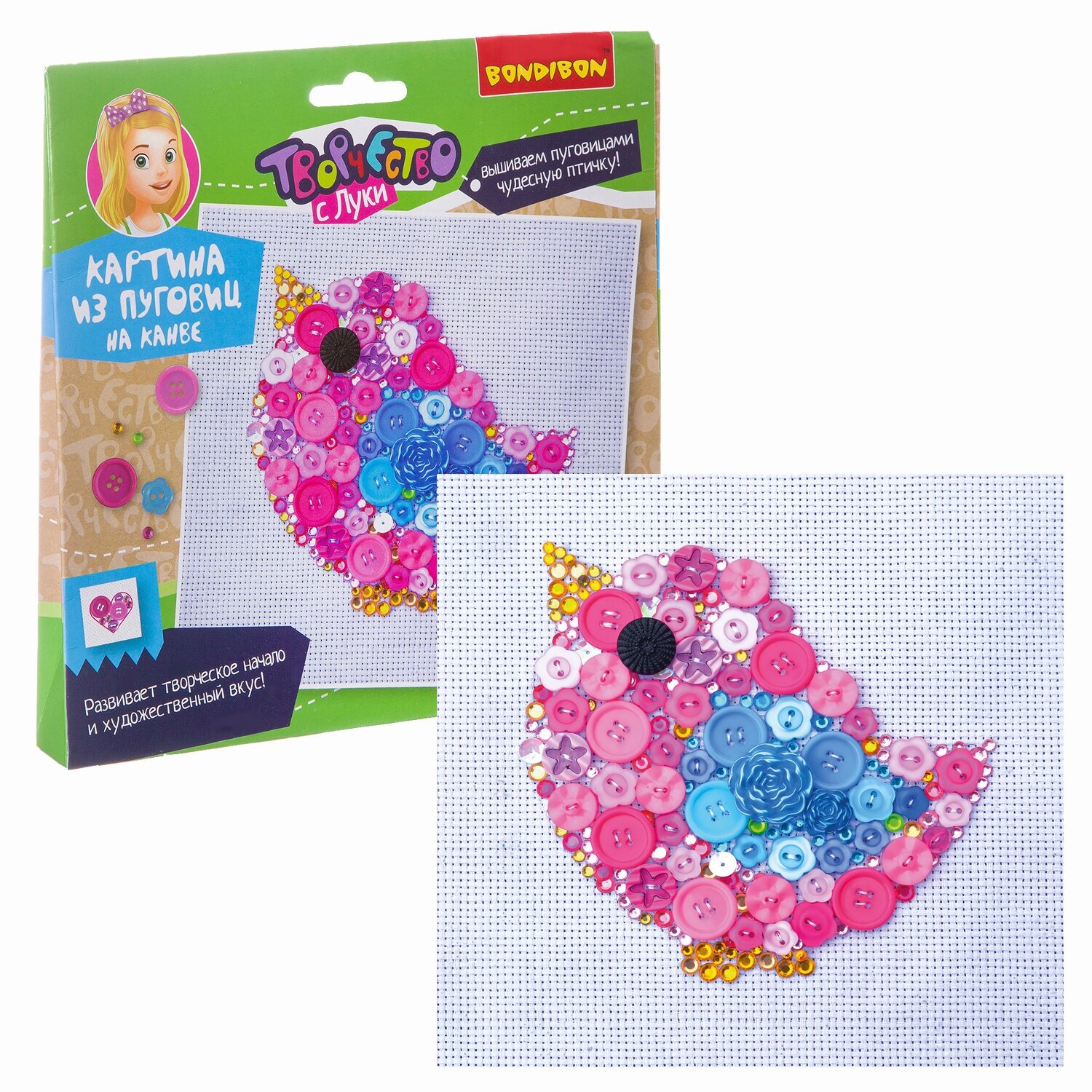 Картина из пуговиц на канве "Птичка" (ВВ2513); BONDIBON, 2017