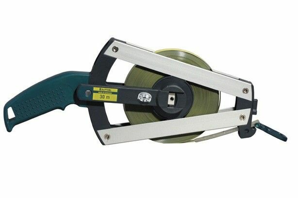 Мерная лента Kraftool предназначена для земельных участков. С ее помощью измеряют расстояние от пункта «А» до пункта «Б». Широко используется в строительной и геодезической сфере. Необходима и в домашнем хозяйстве для измерения садового участка.Особенности лентыВ доме важно иметь полезный инвентарь или инструменты, необходимые в хозяйстве и домашнем быту. Мерная лента Kraftool – это то, что нужно. Она отличается высоким качеством и станет надежным помощником в ряде бытовых проблем. Металлическое полотно имеет ряд преимуществ. Сюда можно отнести:нейлоновое покрытие;устойчивость к истиранию;быструю смотку;длительный срок службы;эргономичный непокрытый корпус.Длина ленты составляет 30 метров. Этого достаточно, чтобы измерять большую площадь земли. Оснащено полотно ручкой со специальным механизмом сматывания, позволяющим работать двумя руками.Изделие для домашнего мастераМерная лента должна быть в каждом доме. Это незаменимая вещь в хозяйстве. С ее помощью можно измерять не только сад или огород, но и расстояние между стенами в квартире. Такую модель выбирают многие профессионалы, работающие в строительстве. Лента отвечает всем нормативным стандартам качества.