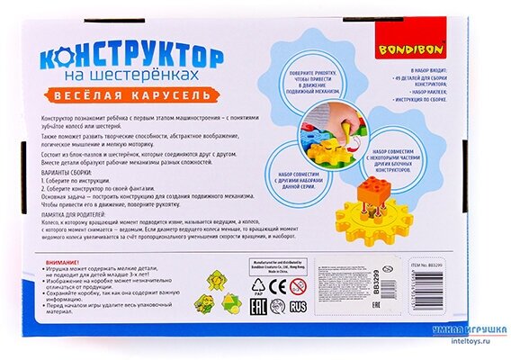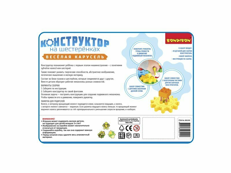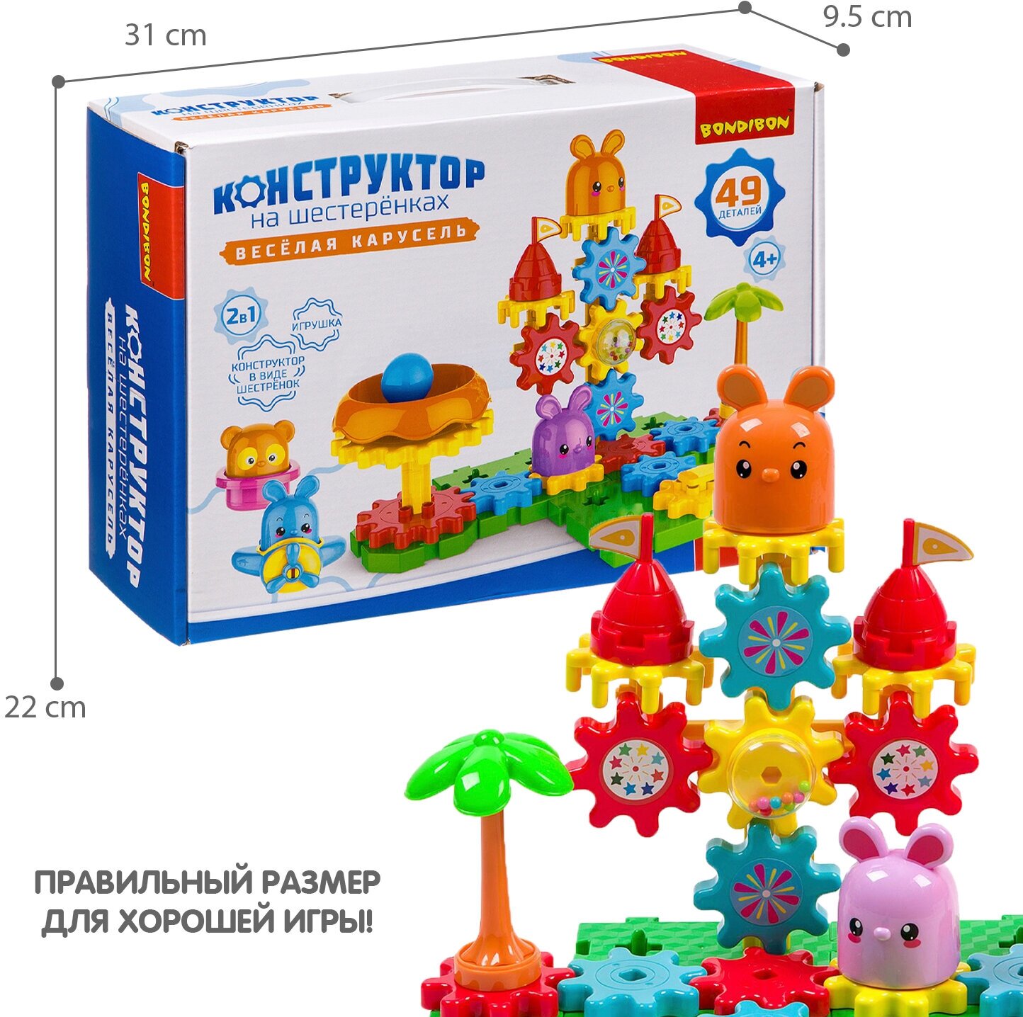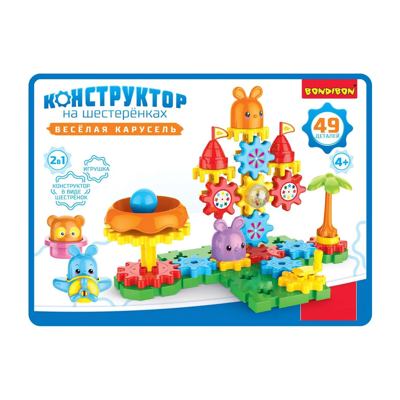 Конструктор на шестеренках "ВЕСЕЛАЯ КАРУСЕЛЬ" 49 деталей (ВВ3299); BONDIBON, 2018