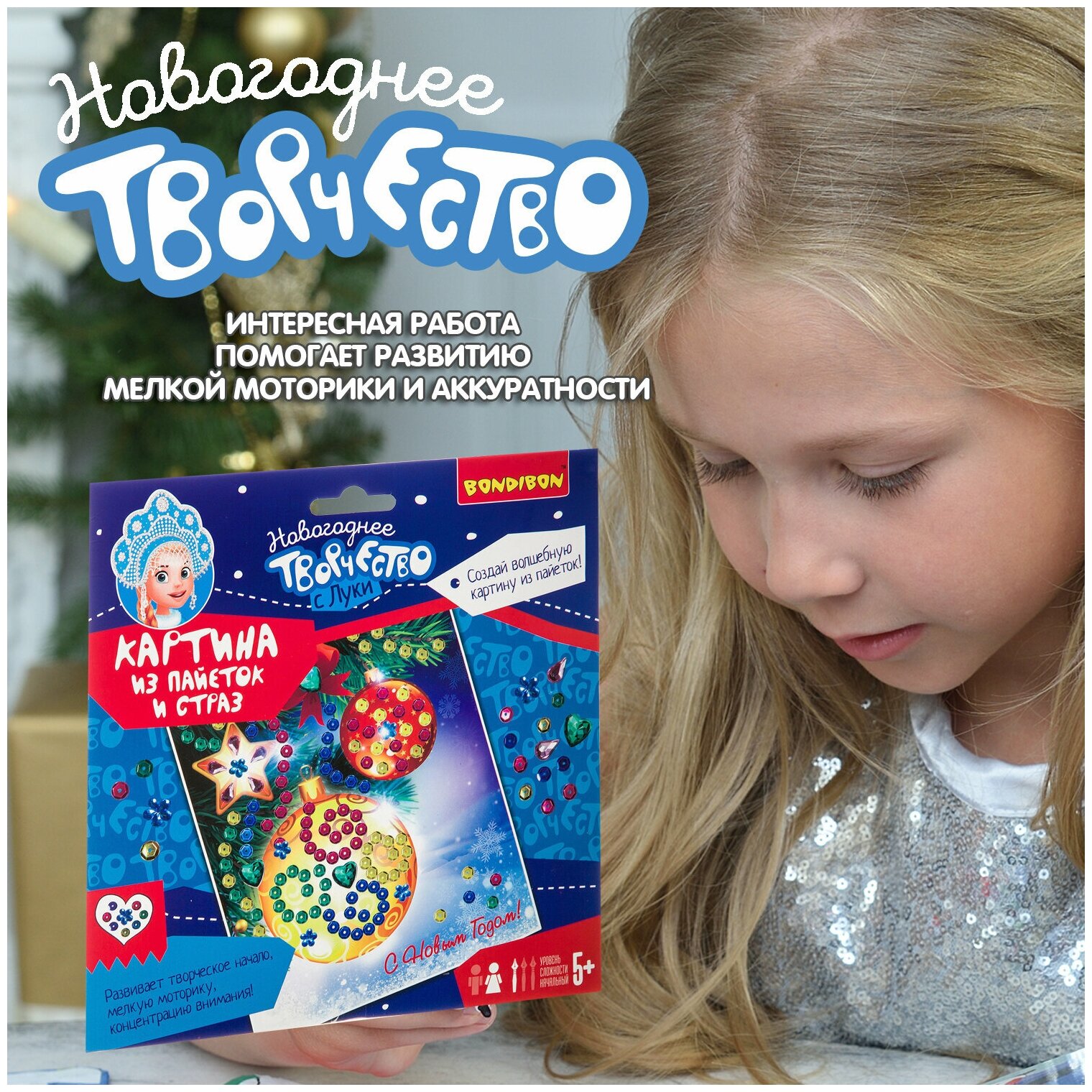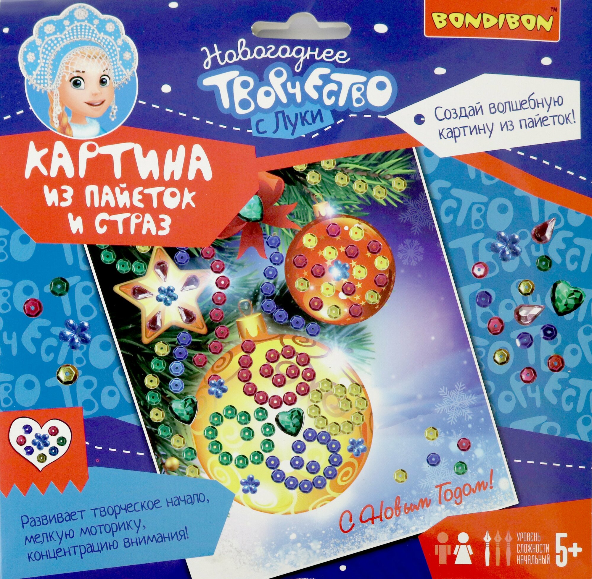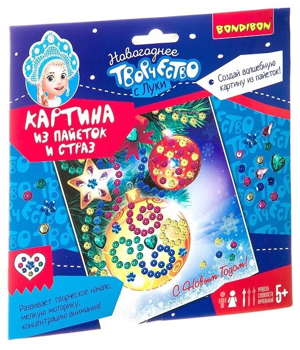 Новогодняя открытка "Картина из пайеток и страз" (ВВ3015); BONDIBON, 2022