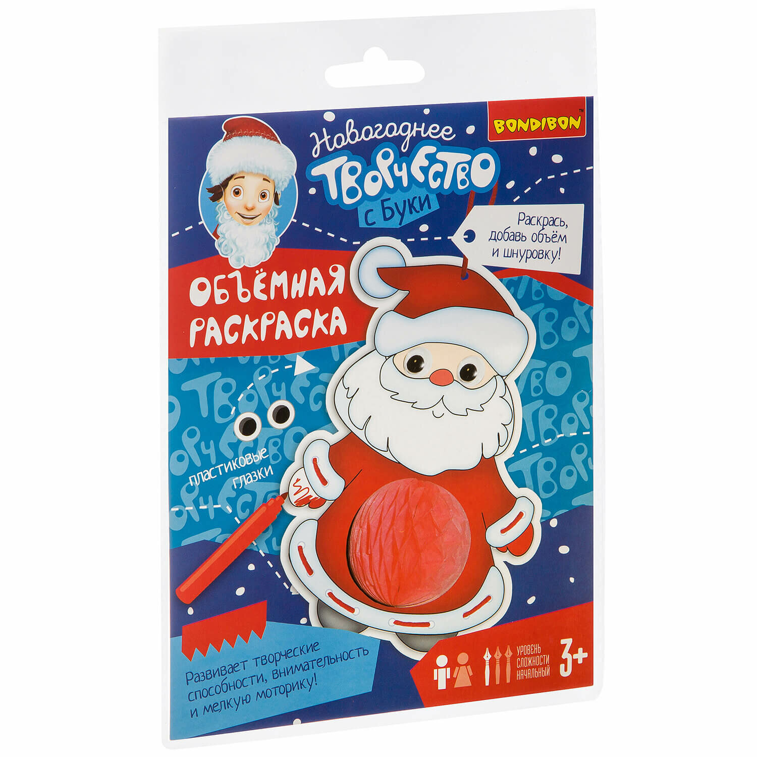 Объемная раскраска "Дед Мороз" (ВВ3017); BONDIBON, 2022
