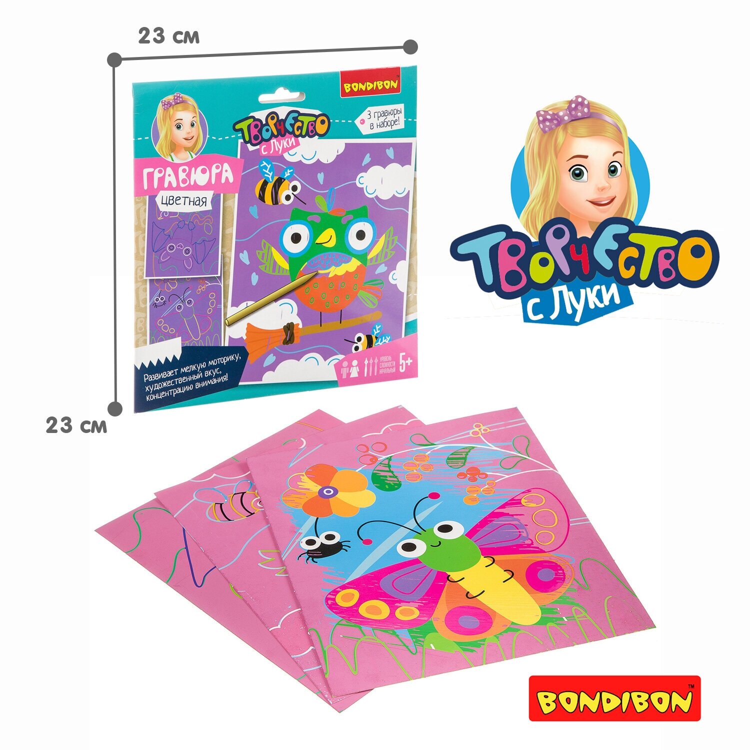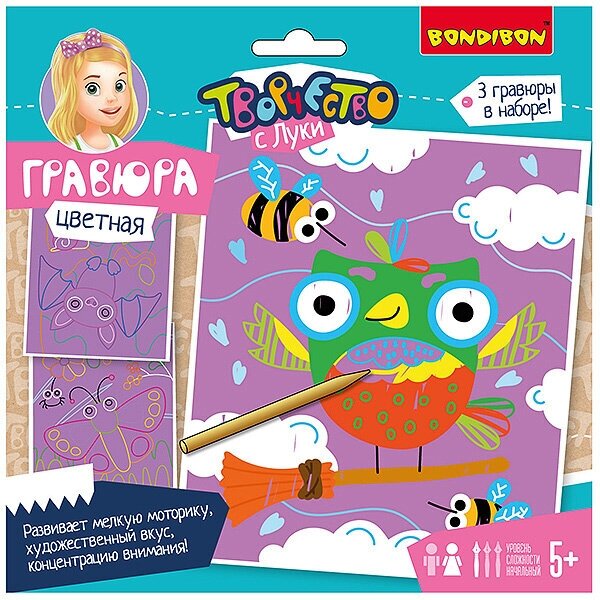 Состав набора: 3 гравюрных листа-основы, палочка-скребок (штихель)