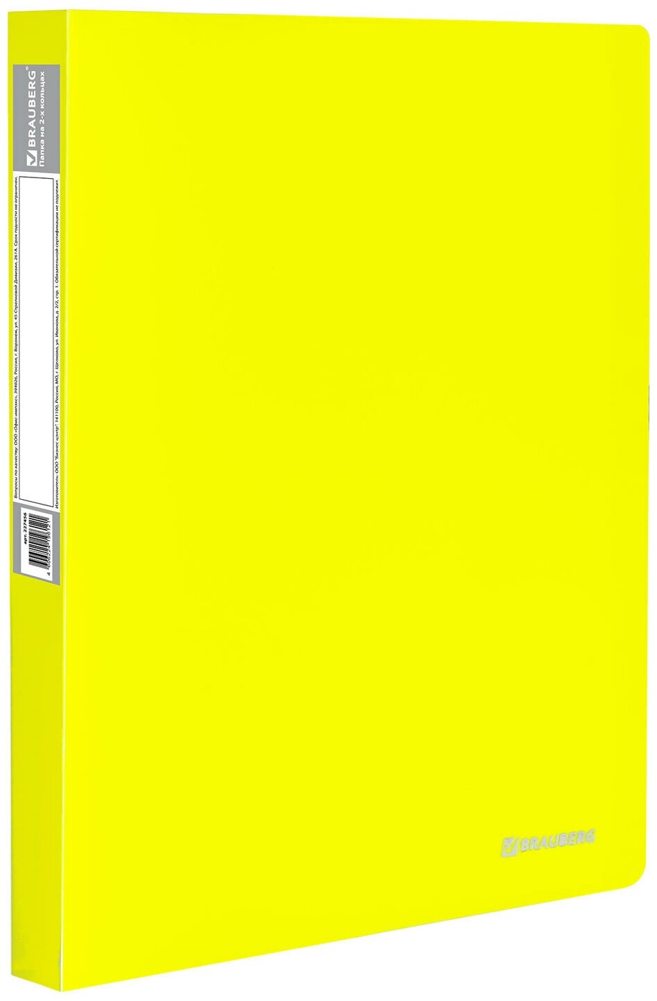 Папка 2 кольца + карман Neon желтая (227457); Brauberg, 2018