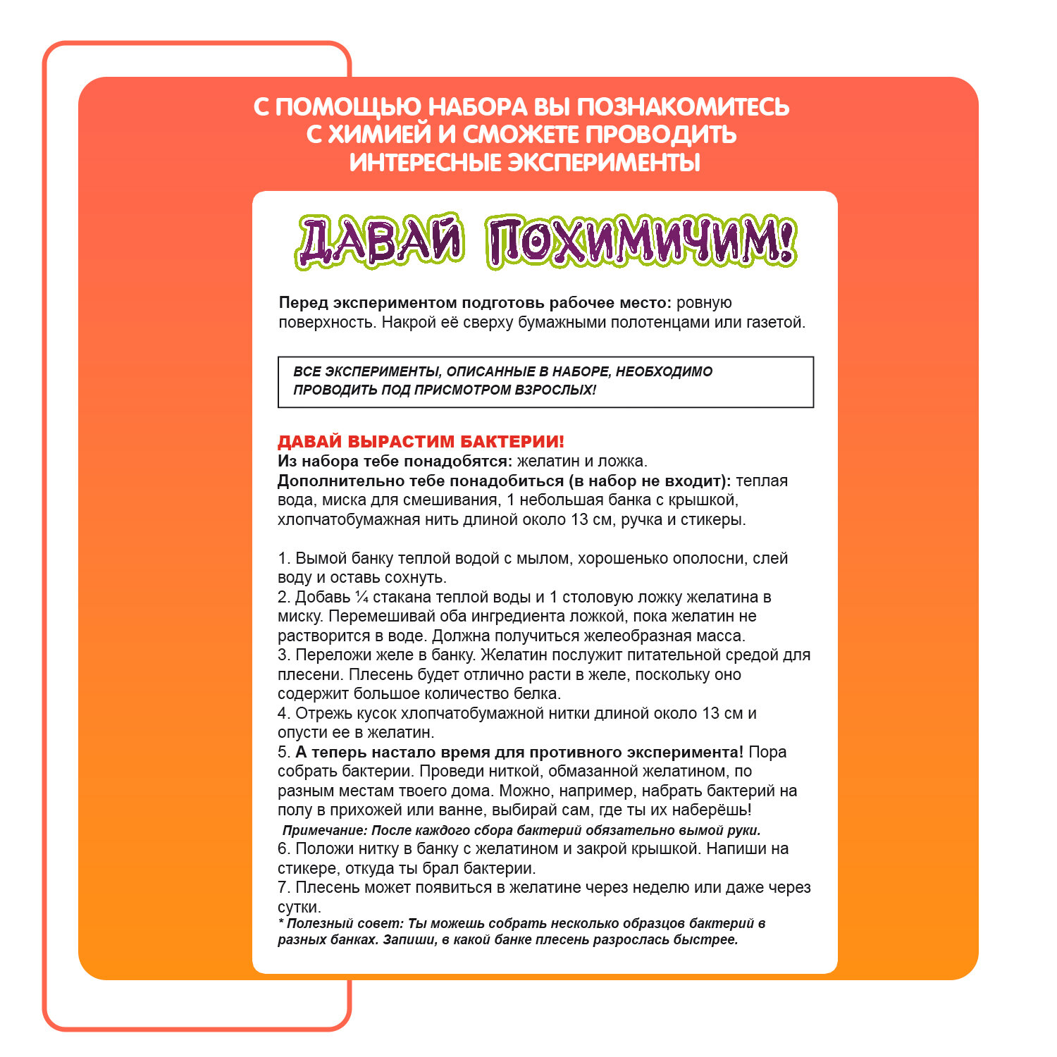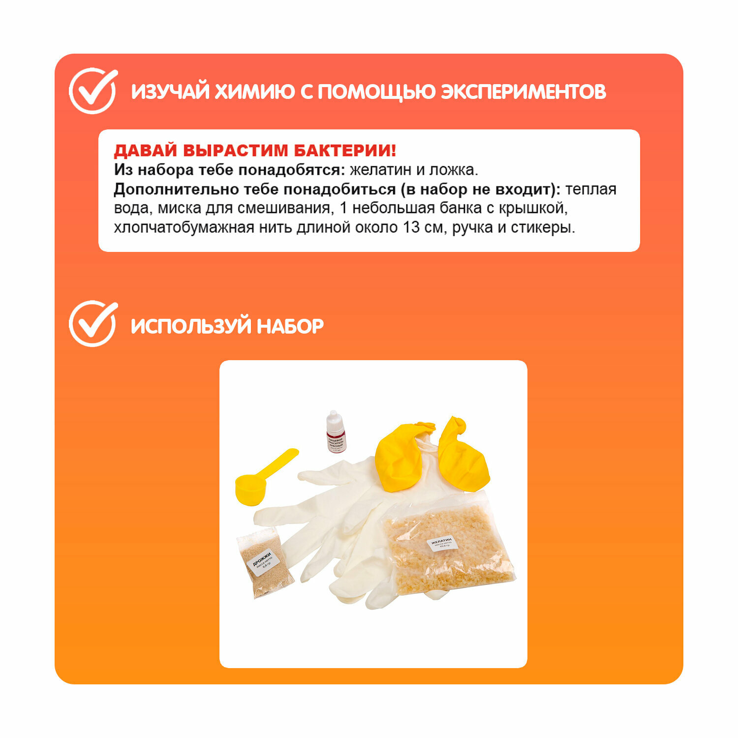 Изучай химию, играя. Проведи эксперимент с надуванием шарика, создай длинные склизкие нити, вырасти бактерии в банке, заставь желатин взлететь.