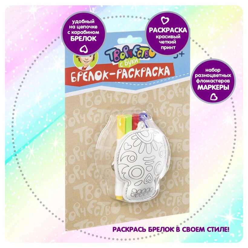 Простой и увлекательный творческий процесс создания собственного брелока. Подбери цвета и раскрась на свой вкус! Развивает мелкую моторику и творческое начало. Фломастеры в комплекте.