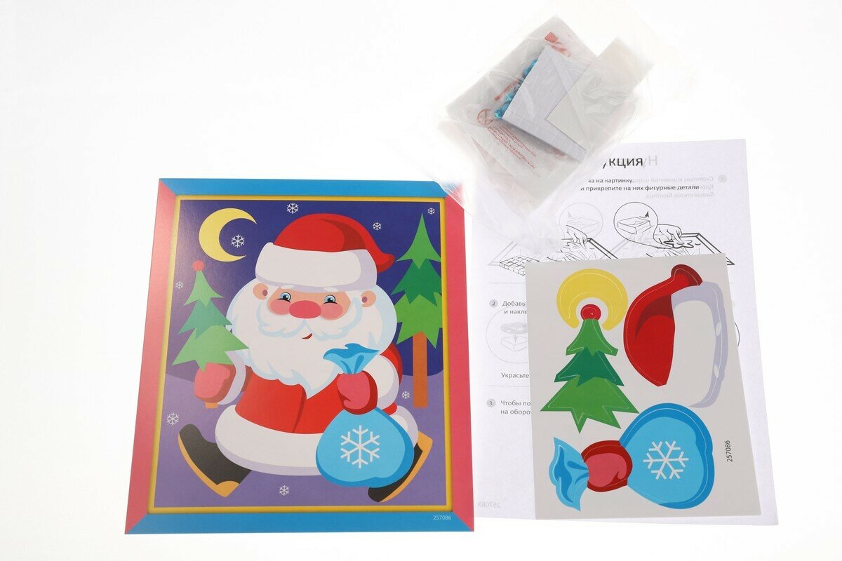 Коробочка пришла помятая, если бы на подарок, то не подошло бы. Для детей с 3- 4 до 5-6 лет. Картонка-картина размером 16 на 20 см. Сама апликация яркая, дед Мороз симпатичный, пайеток 5 цветов, довольно много каждого цвета. Можно поукрашать -пофантазировать в новогодние праздники. Но чего -то особо оригинального от этого набора ожидать не стоит.