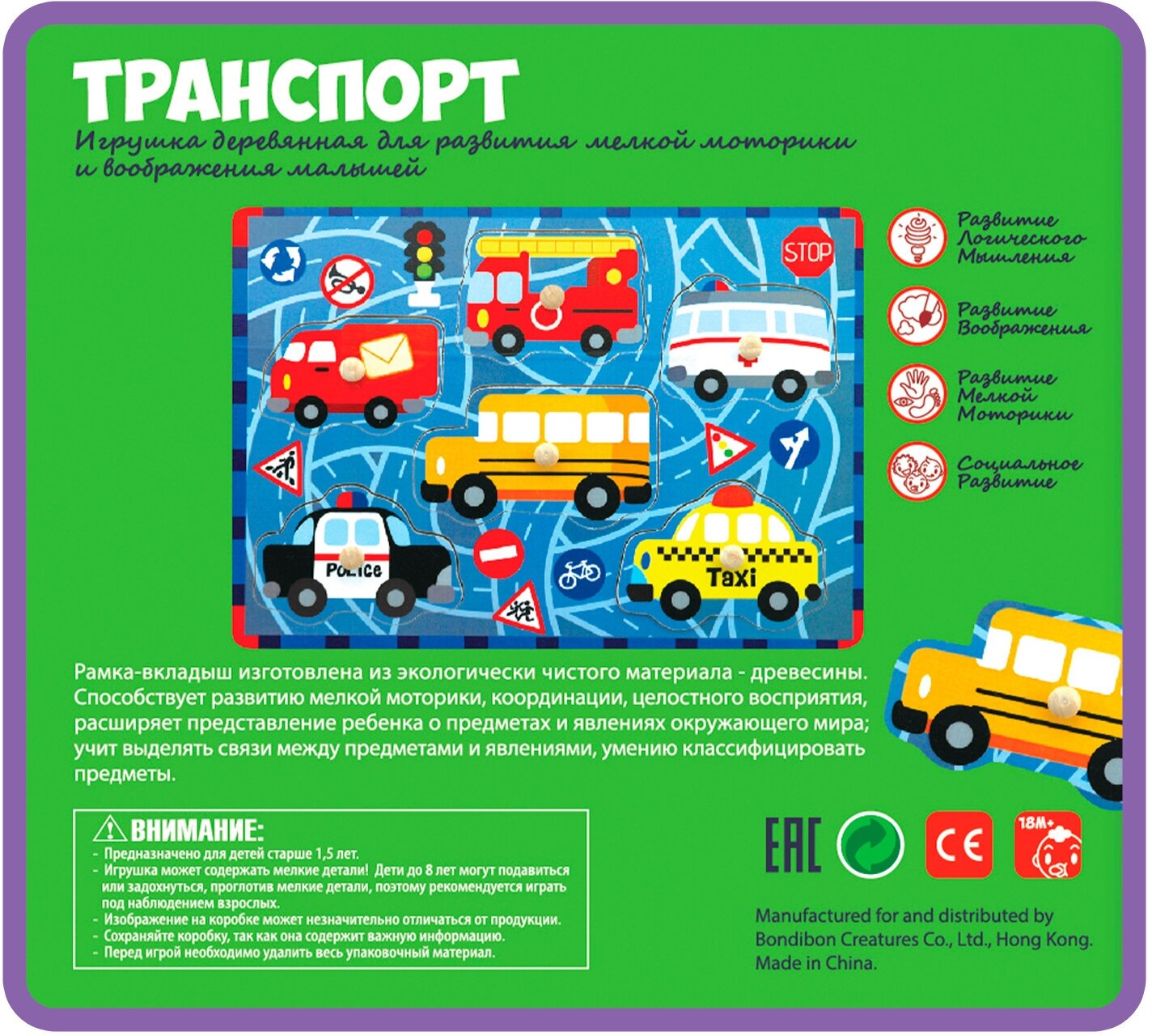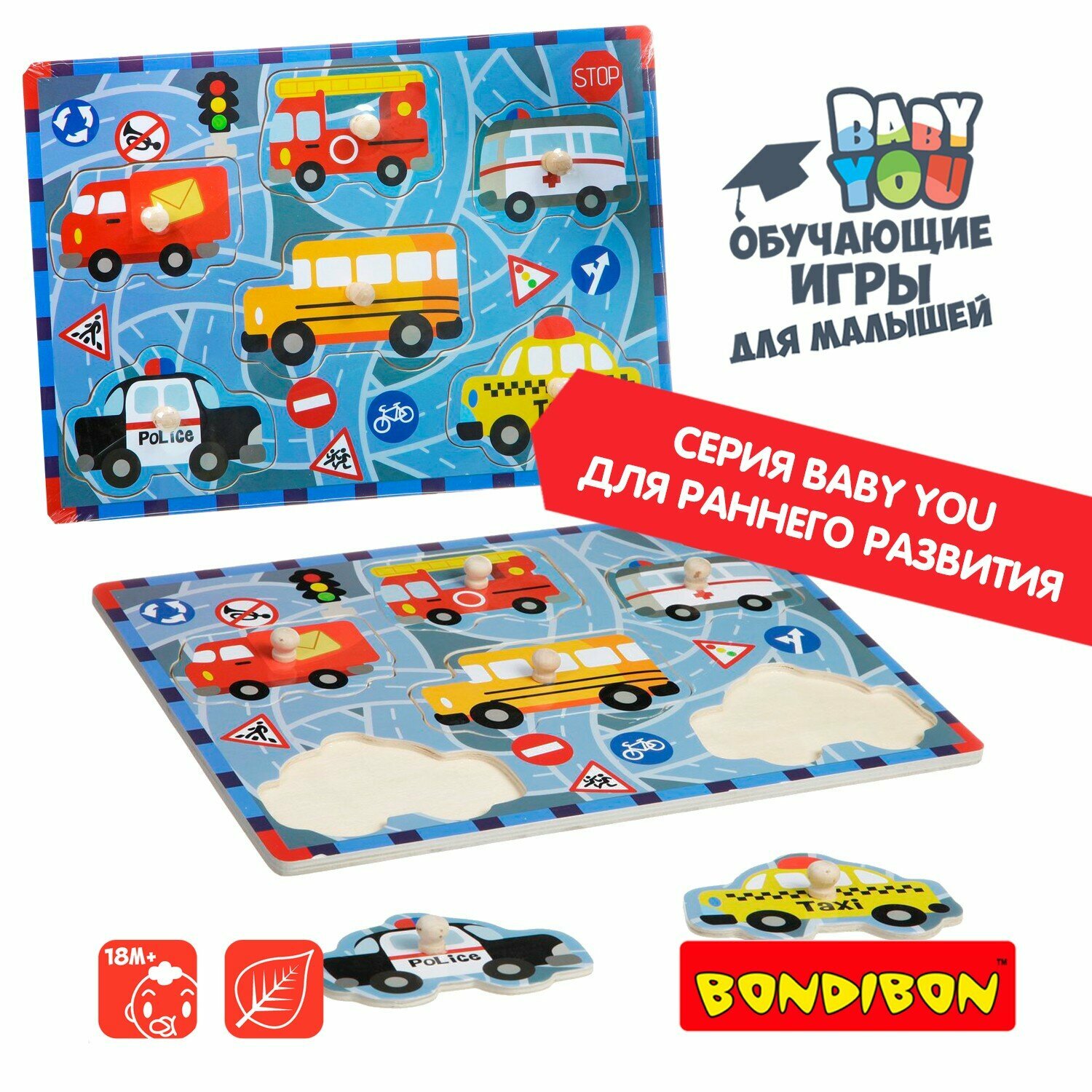 Игра деревянная: рамка-вкладыш "Транспорт" (TKA393/ВВ1501); BONDIBON, 2018