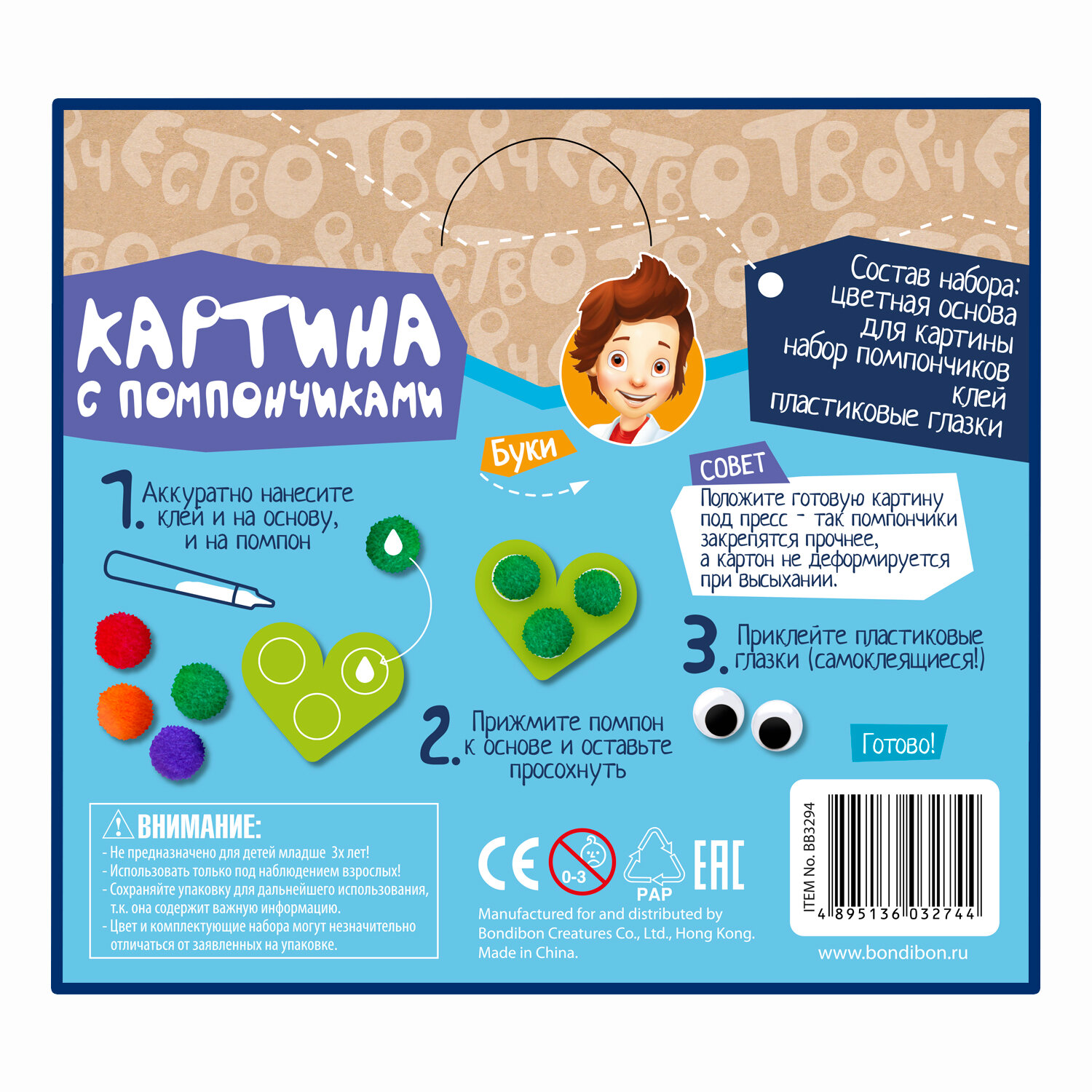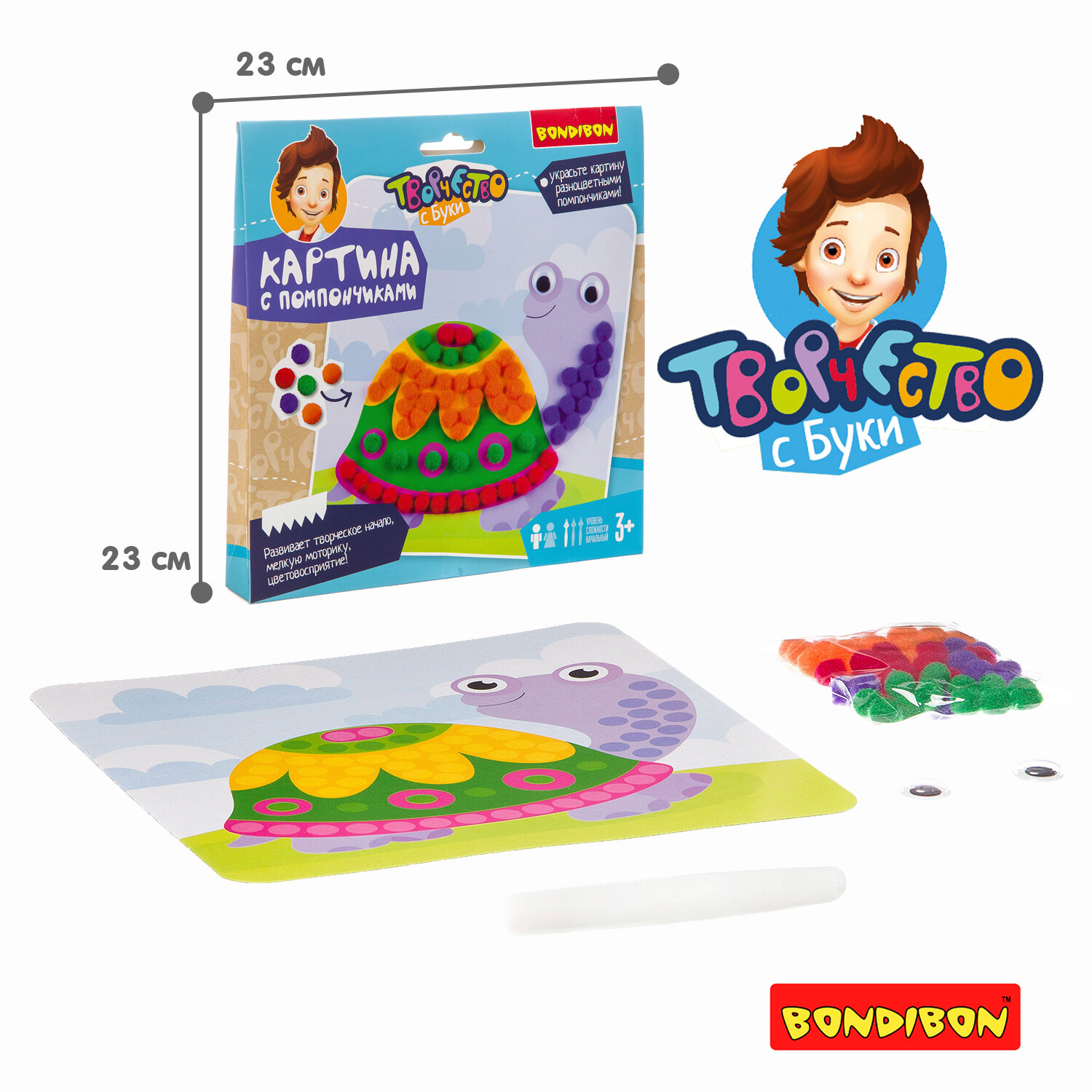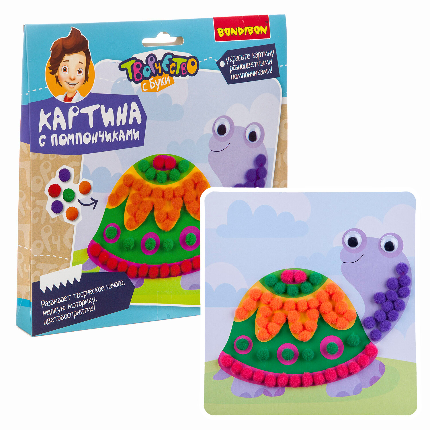 Набор для творчества "Картины с помпончиками. Черепашка" (ВВ3294); BONDIBON, 2018