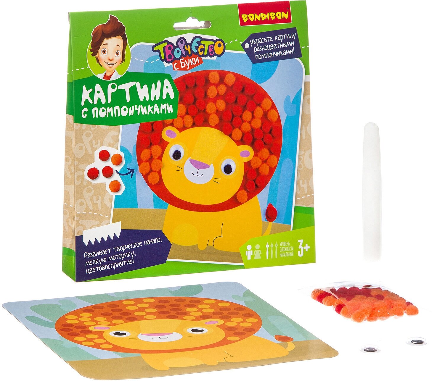 Набор для творчества "Картины с помпончиками. Львенок" (ВВ3292); BONDIBON, 2018