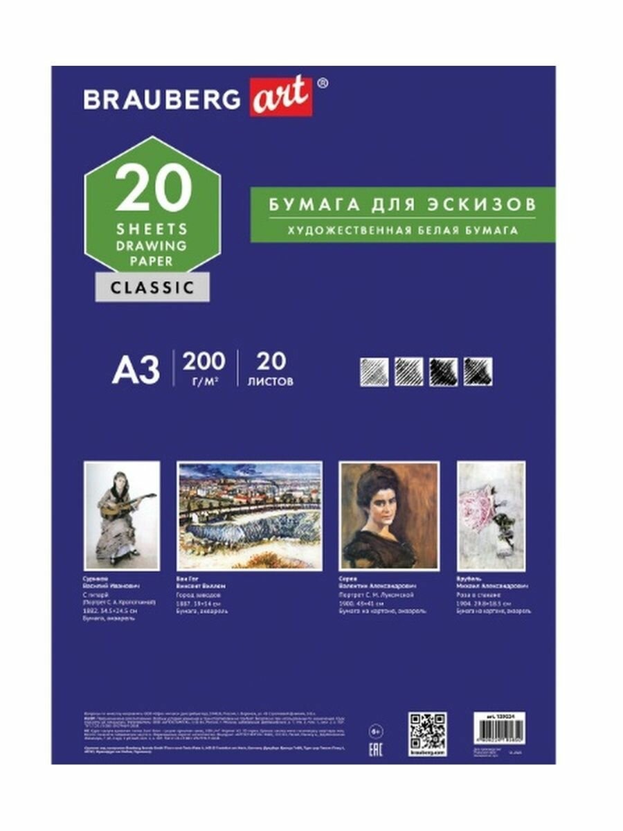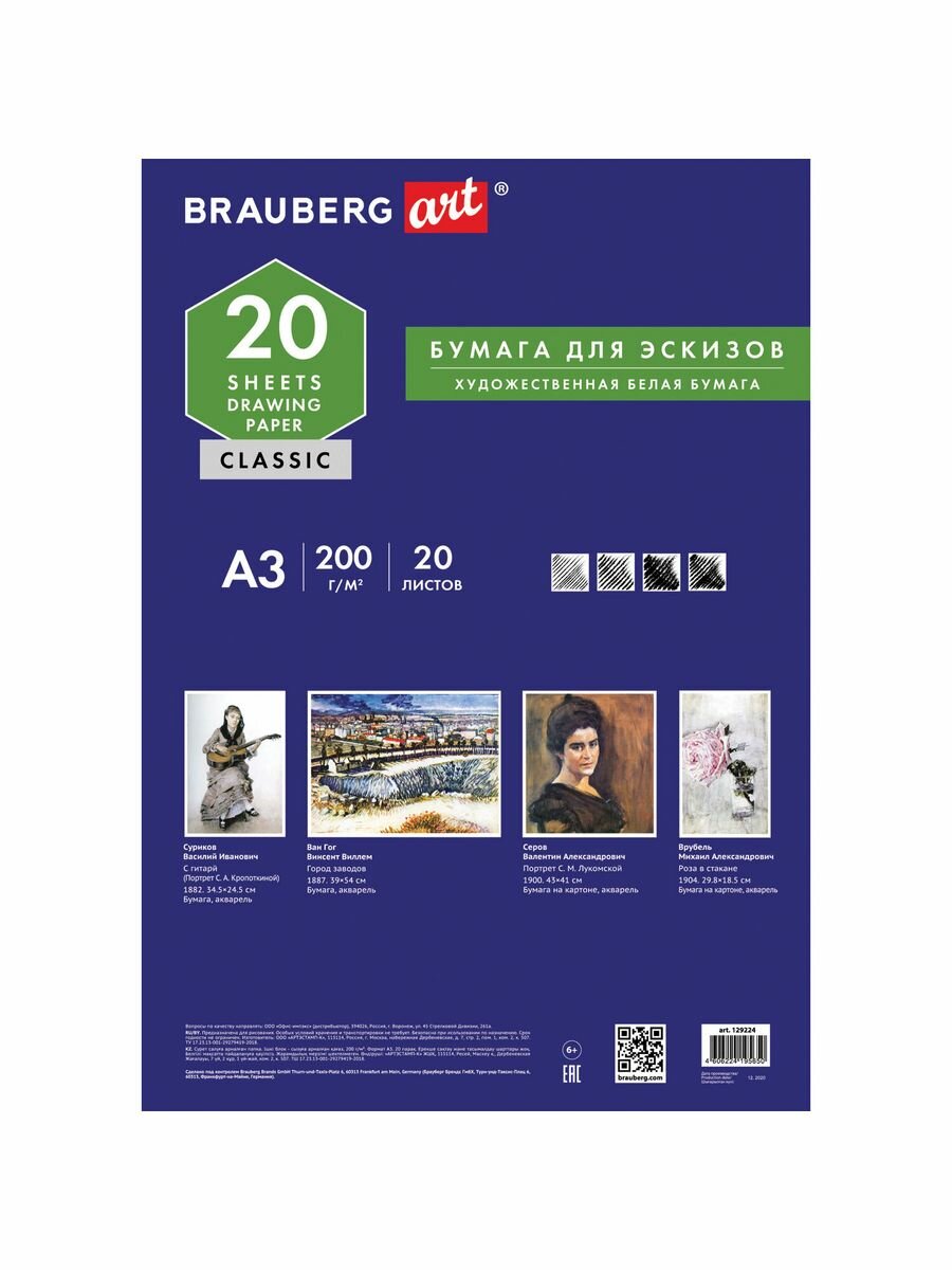 Папка для рисования А3 20 листов (129224); Brauberg, 2020