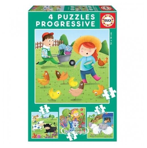 Пазл 4 в 1 "Животные на ферме" (6 9 12 16 деталей) (17145); Educa, 2018