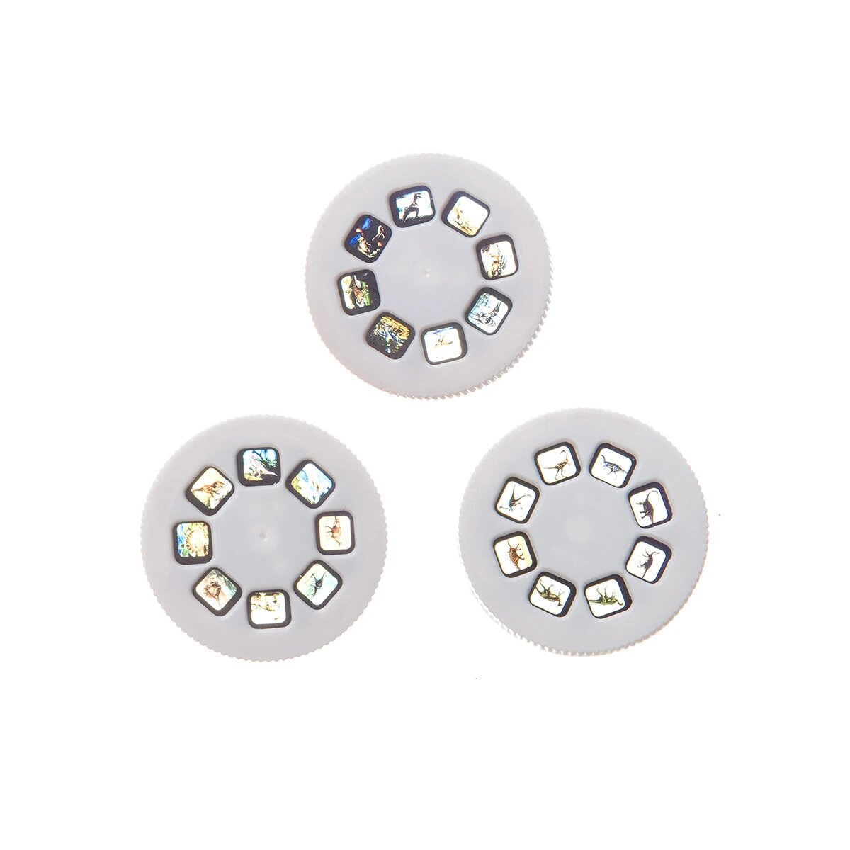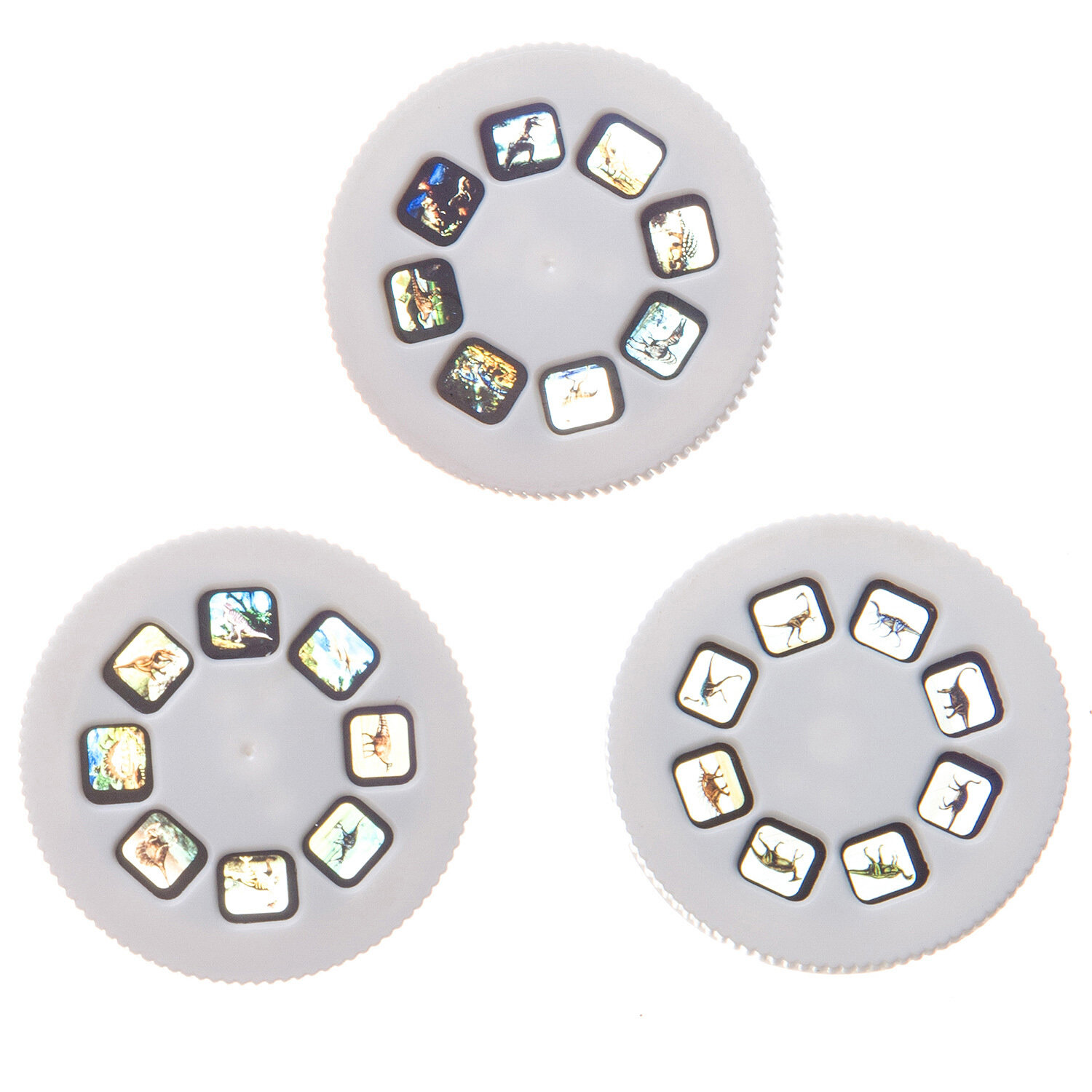Не советую категорически! По сравнению с диапроектором «животные» полная ерунда. Картинки некрасивые, обрезанные, мутные (не связано с фокусом) сами по себе. Только на одном диске динозавры на цветном фоне, на двух остальных на белом фоне, как будто неаккуратно вырезали из старой книжки и приклеили на лист бумаги. Хвоста ни у одного динозавра нет, не влезли видимо. Разочарование сплошное. В целом диски легко вставляются, крепко держатся, легко крутятся. На этом плюсы закончились. Использовать можно только как фонарик, эстетического удовольствия 0. Берите лучше «животных».