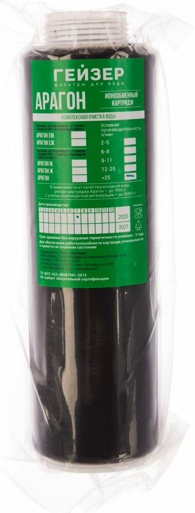 Арагон-Ж – картридж из материала Арагон, разработанный для очистки жесткой воды (средний уровень минерализации). Имеет 3 уровня фильтрации (механический, ионообменный и сорбционный).
