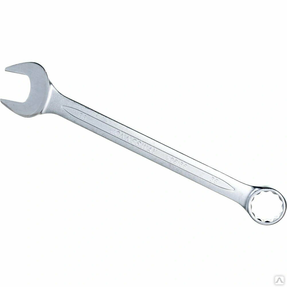 Комбинированный ключ Jonnesway изготовлен из хромованадиевой стали высокой прочности. Имеет хромовое покрытие. Предназначен для монтажа (демонтажа) резьбовых соединений. Имеет две головки разного профиля - рожковую и накидную. Размер - 36мм.