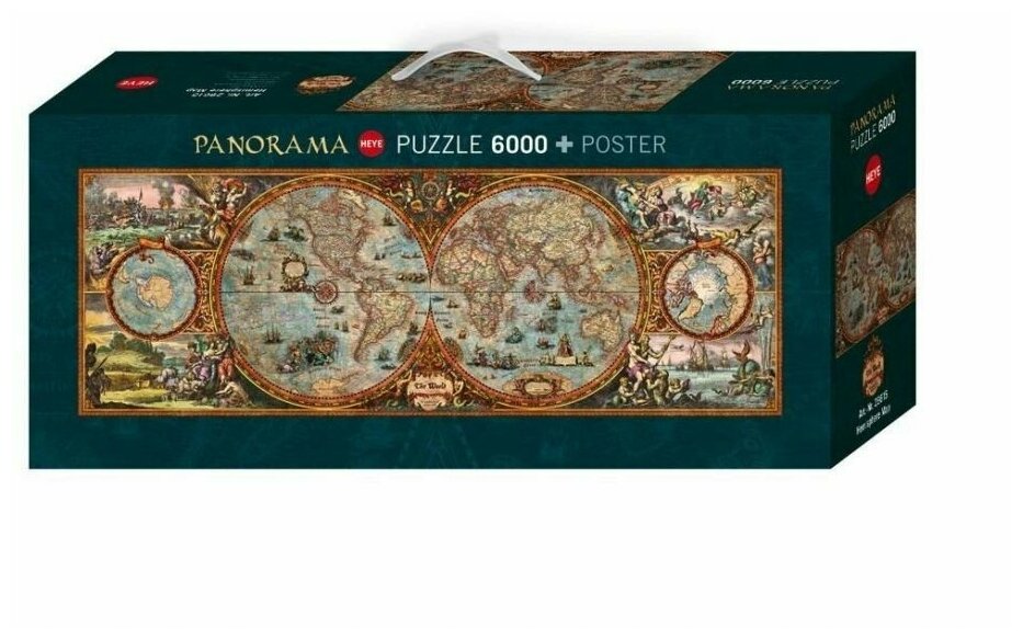 Puzzle-6000 "Карта полушарий панорама" (29615); Heye, 2014