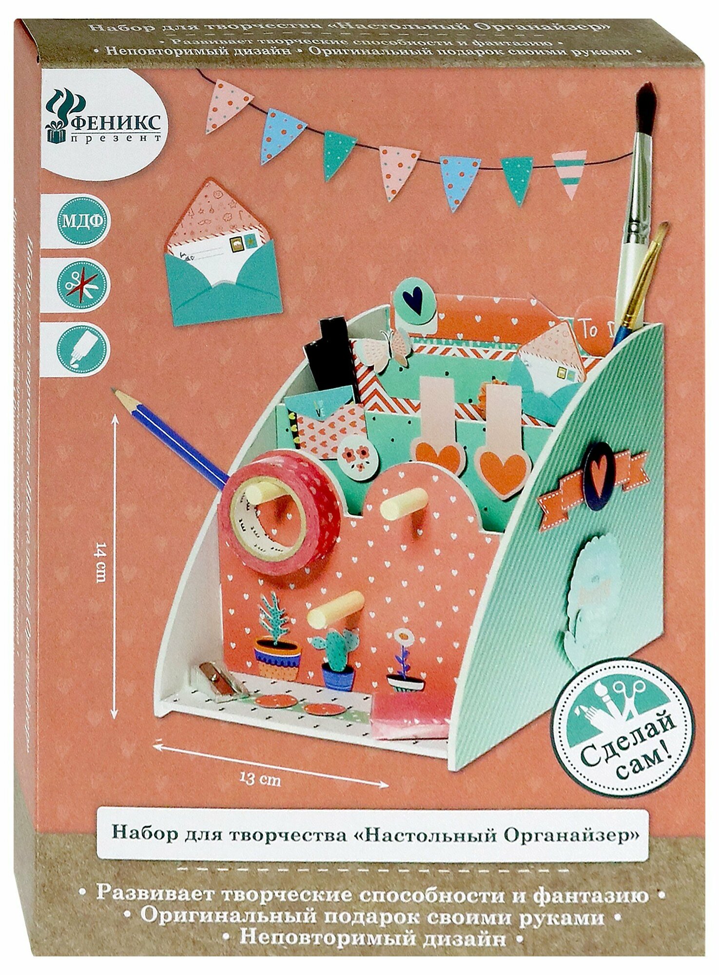 Хотите создать уникальное украшение для Вашего интерьера? С помощью этого набора нет ничего проще! Легко изготовить функциональный и яркий органайзер для удобного хранения письменных принадлежностей! Увлекательное занятие позволит погрузиться в творческий процесс, а подробная инструкция поможет при составлении композиции.