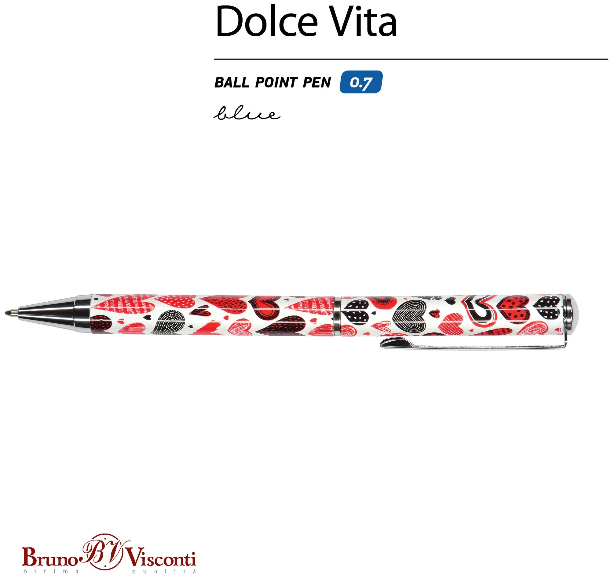 Ручка шариковая "DV. Сердечки. Фантазия" 0.7 мм синяя (20-0252/07); Bruno Visconti, 2019