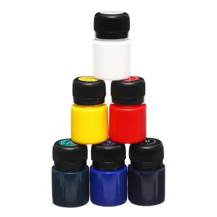 Состав набора: белая, желтая светлая, красная, изумрудная, синяя темная, черная.