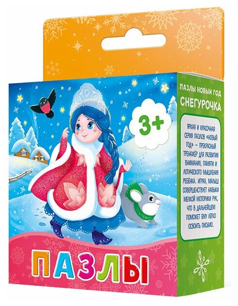 Яркая и красочная серия пазлов "Новый год" - прекрасный тренажёр для развития внимания, памяти и логического мышления ребёнка. Играя, малыш совершенствует навыки мелкой моторики рук, что в дальнейшем поможет ему легко освоить письмо.