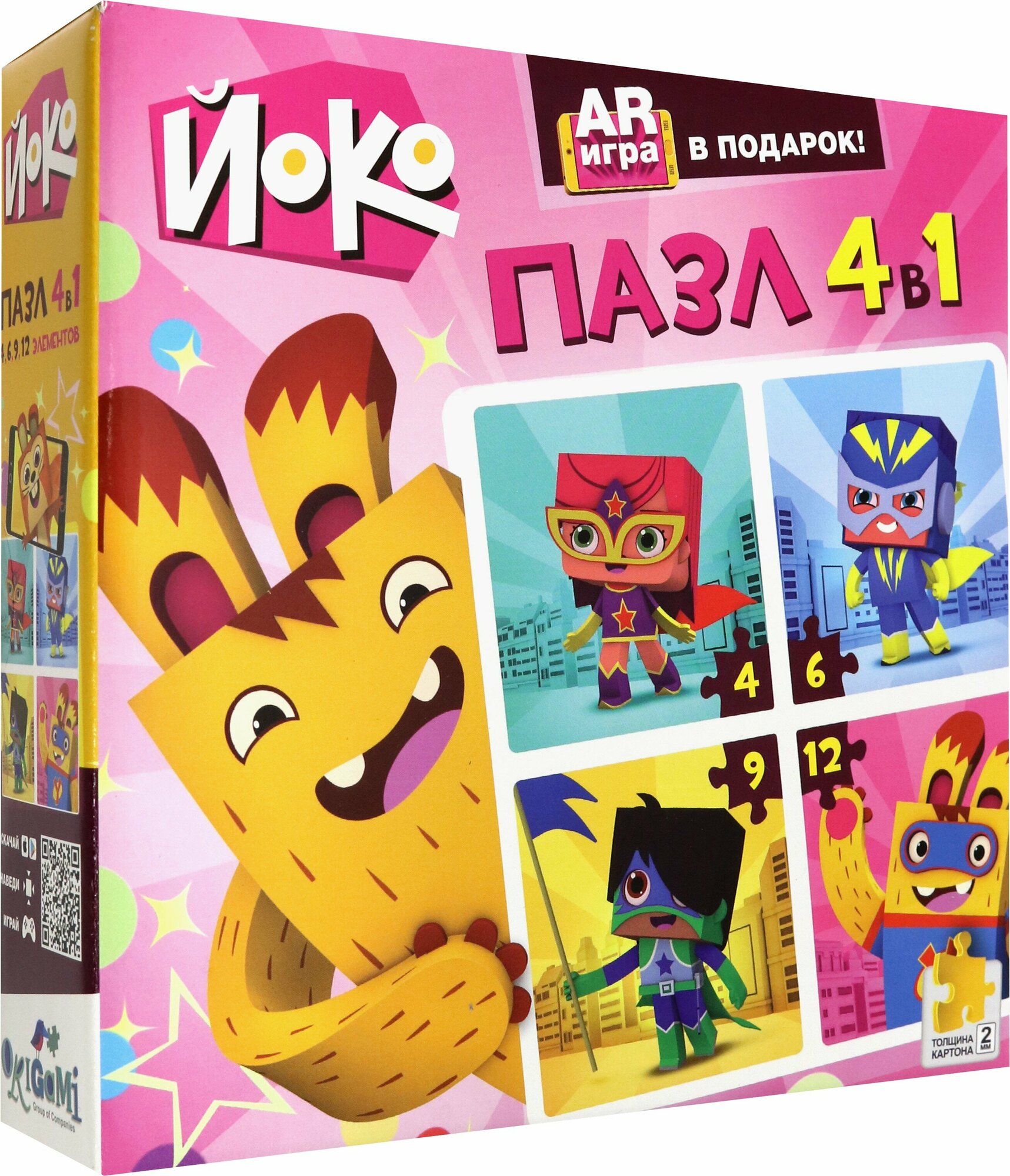 Комплектность: 4 пазла на 4,6,9,12 элементов + AR игра.