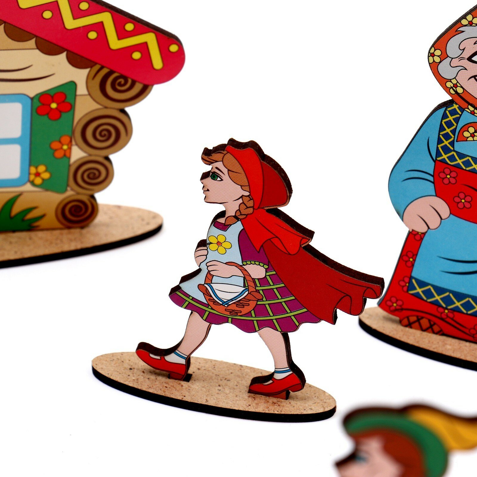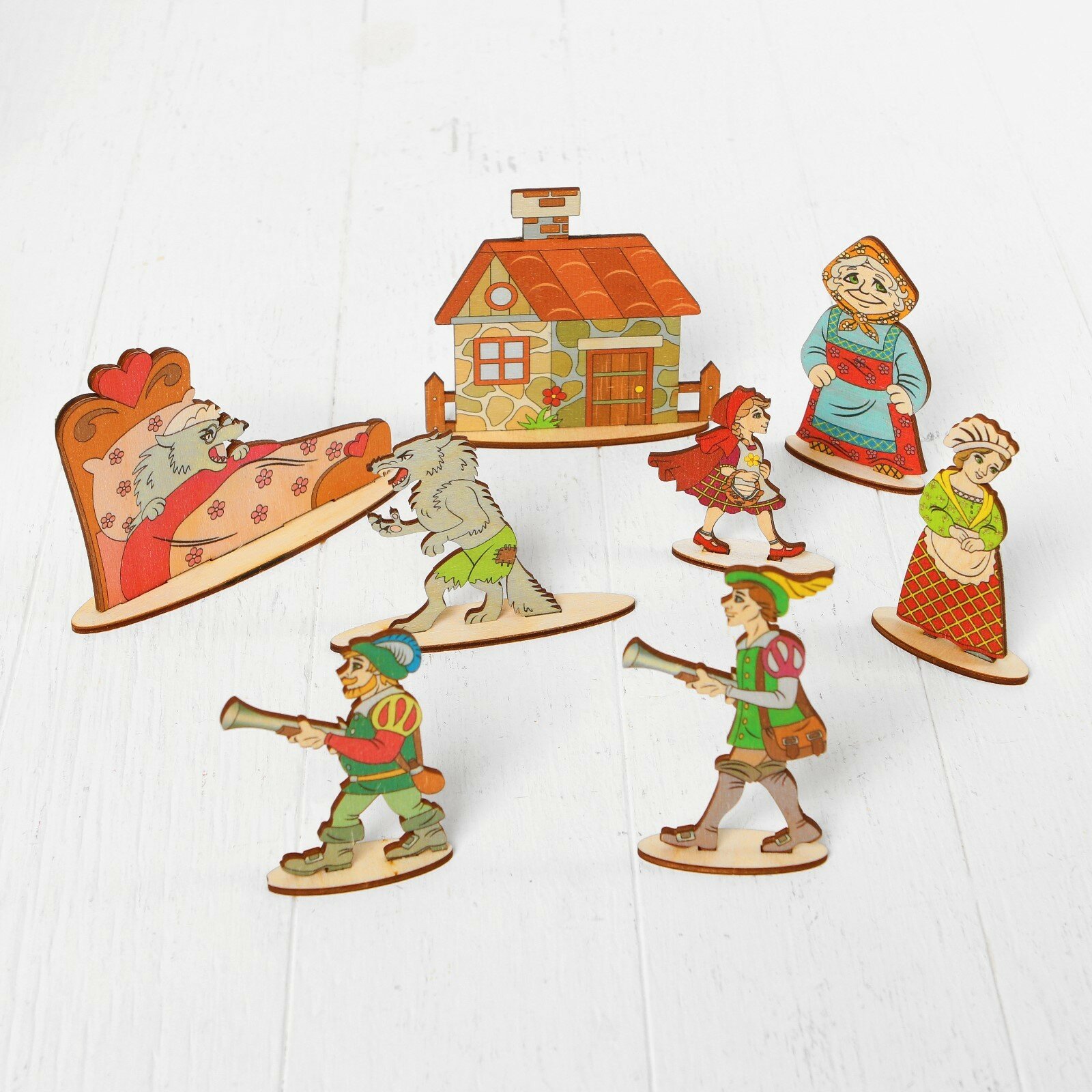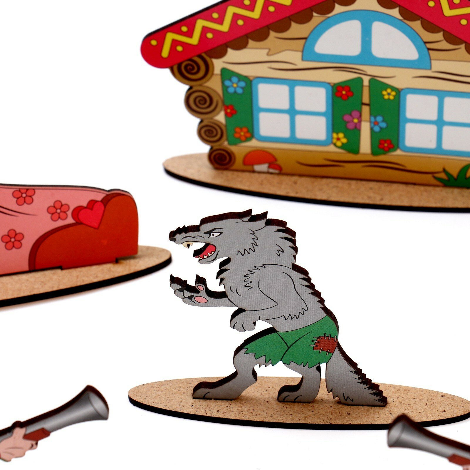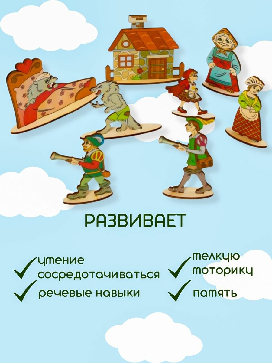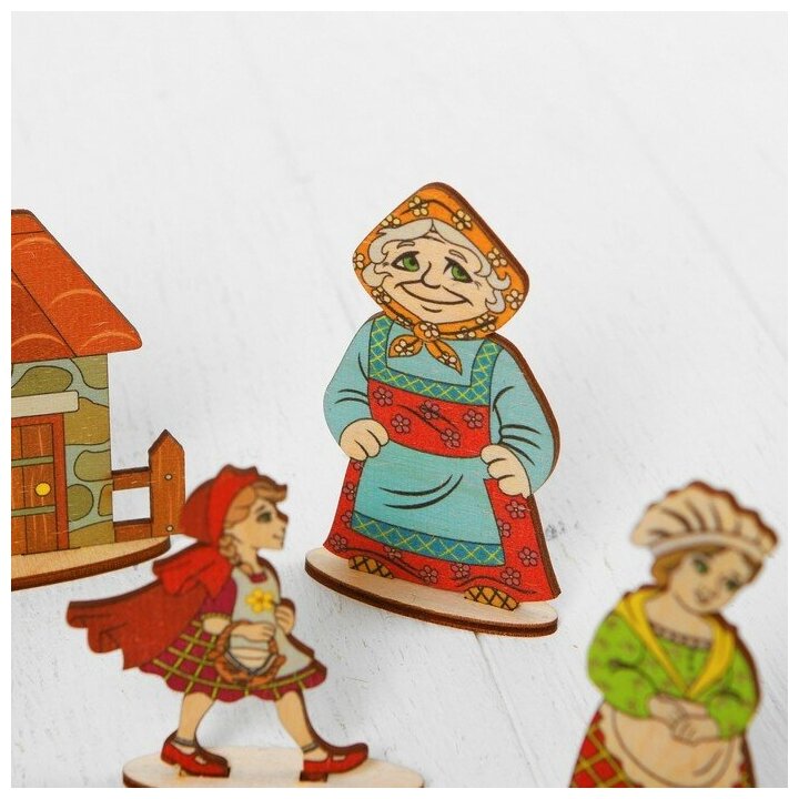 Рекомендую брать сразу несколько сказок - у нас домики из "Золотой рыбки" кочуют из сказки в сказку, в волка-гиганта из сказки о семерых козлятах поменяли с низкорослым волком-злодеем из "Красной шапочки", чтобы все герои были соразмерны.