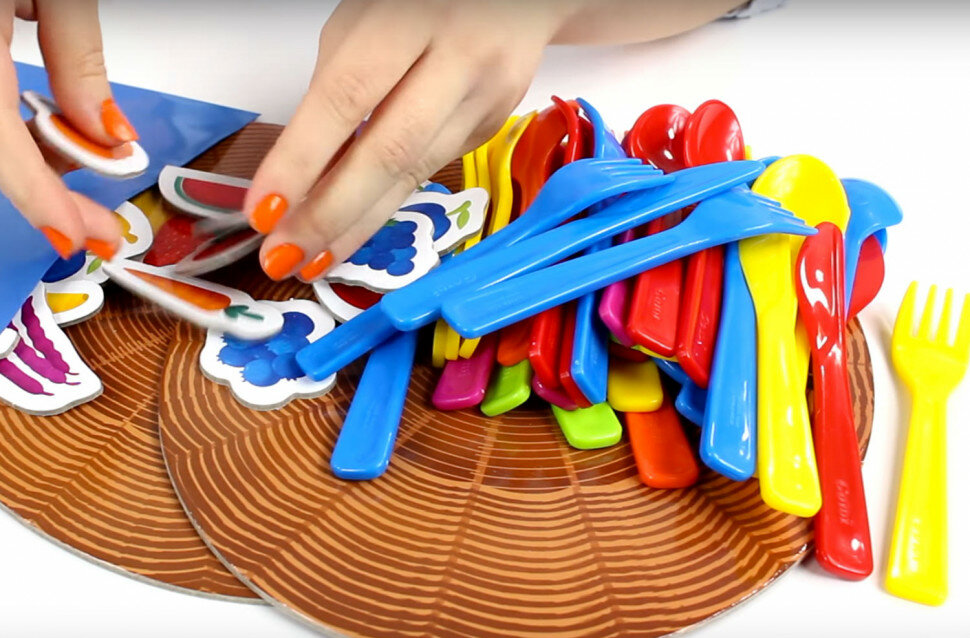 В этой игре дети на скорость должны заполнять свои корзины продуктами питания и столовыми приборами, выбирая их по цветам. Игрок, который соберет больше всех предметов, выиграет титул Цветного Шефа.