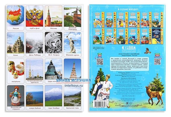 -Атлас мира с наклейками. Наша родина Россия. Формат 21*29,7. 65 наклеек.