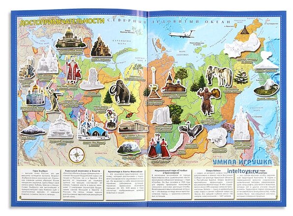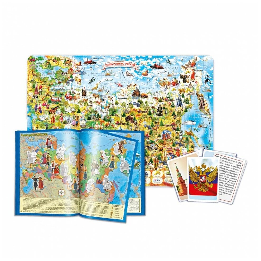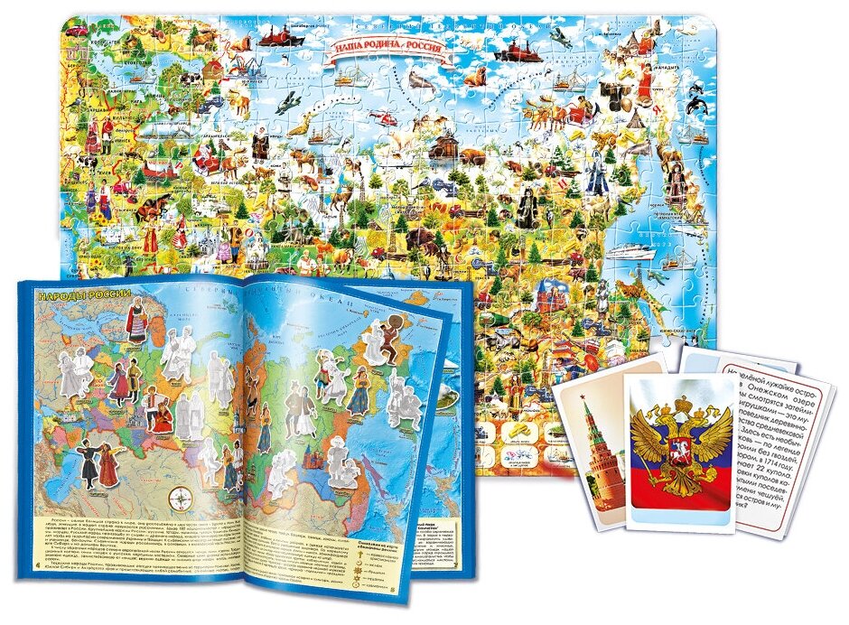 Карта-пазл "Наша родина Россия" - настоящий путеводитель по России для детей, выполняющий важную задачу знакомства с родной страной, её культурой и традициями, народами, достопримечательностями. В собранном виде будет служить прекрасным дополнительным материалом для познания окружающего мира и географии. Пазл красочный и интересный, с большим количеством иллюстраций.