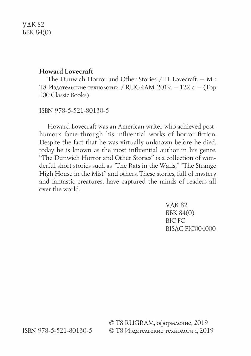 The Dunwich Horror and Other Stories (Lovecraft Howard, Лавкрафт Говард Филлипс); RUGRAM, 2019