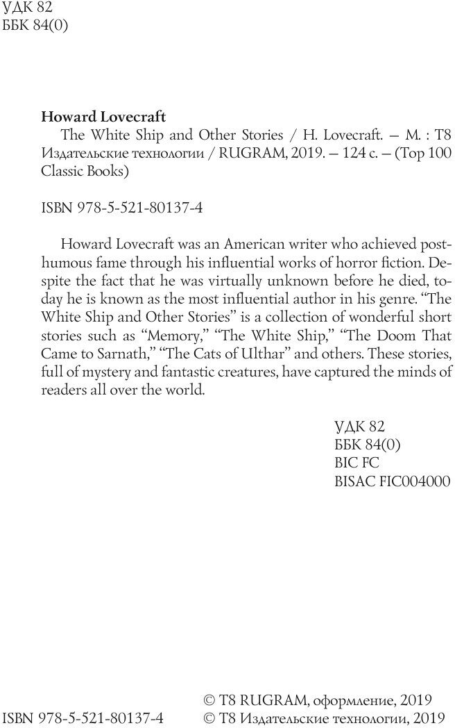 The White Ship and Other Stories (Lovecraft Howard, Лавкрафт Говард Филлипс); RUGRAM, 2019