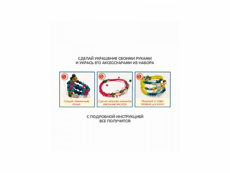 Сделай 2 чарующих браслета. Используй имеющиеся для этого в наборе аксессуары разноцветные бусы и нити.