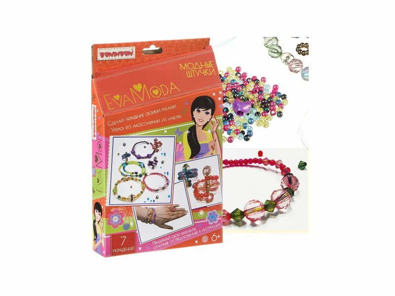 В наборе: 4 цветных проволоки, более 300 стильных бусин, инструкция.