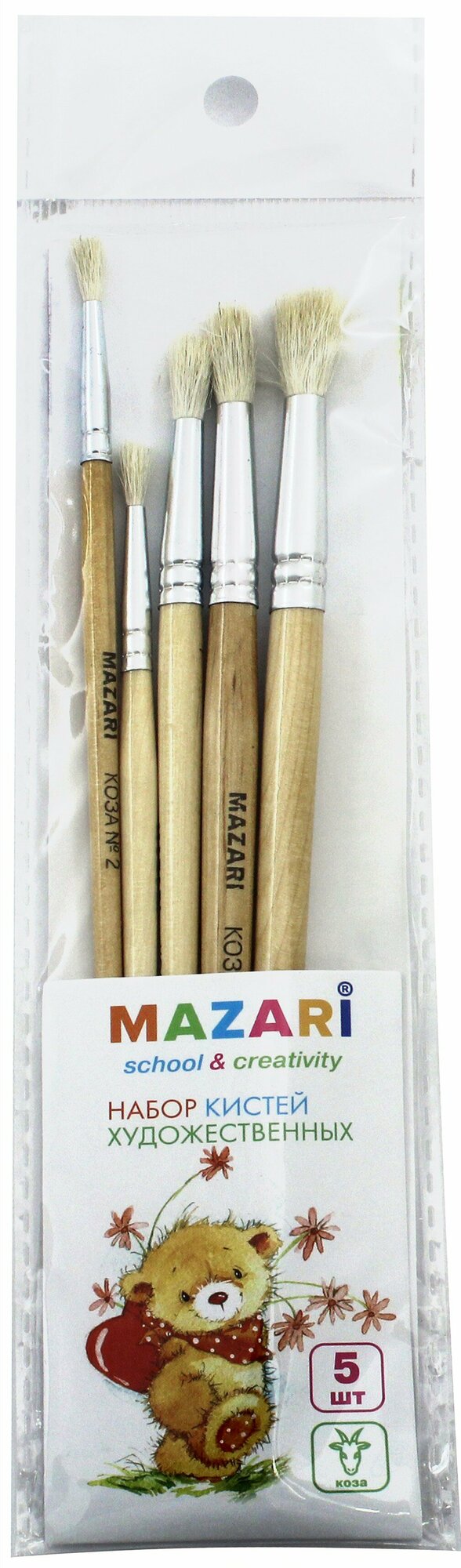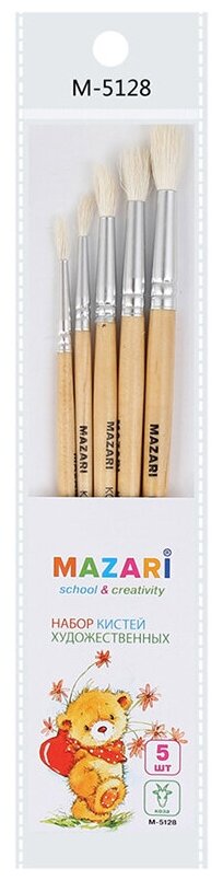 Набор художественных кистей (5 шт коза № 2 3 4 5 6) (М-5128); MAZARI, 2017