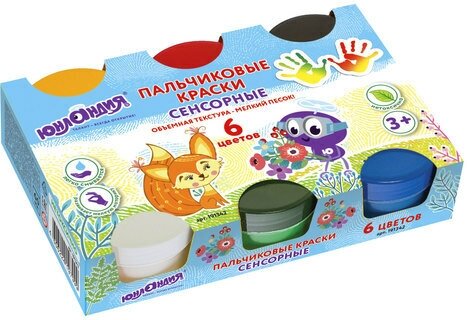 Сенсорные пальчиковые краски ЮНЛАНДИЯ выполнены на основе натуральных, экологически чистых компонентов, не токсичны. Благодаря мельчайшим крупинкам в составе, имеют шероховатую структуру, которая способствует развитию мелкой моторики малыша.
