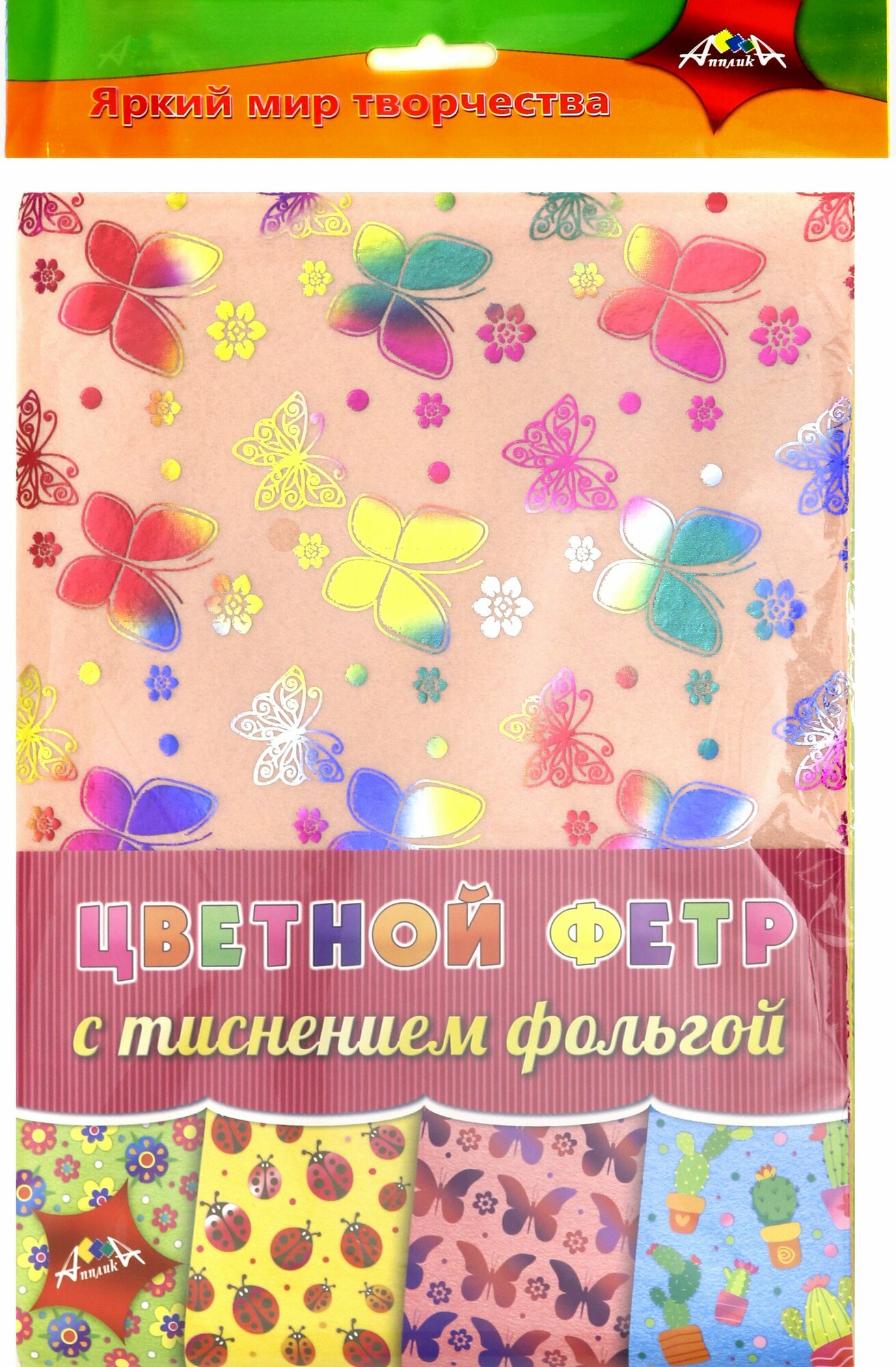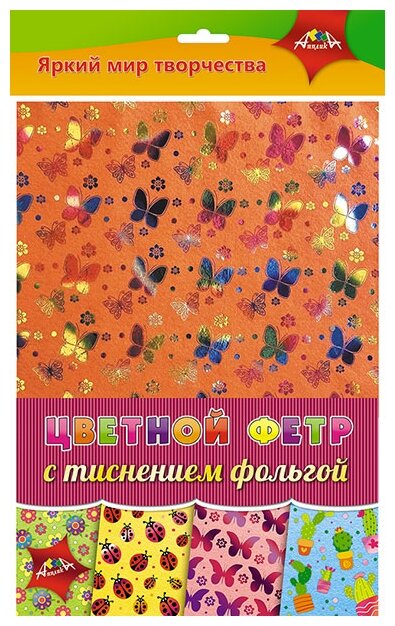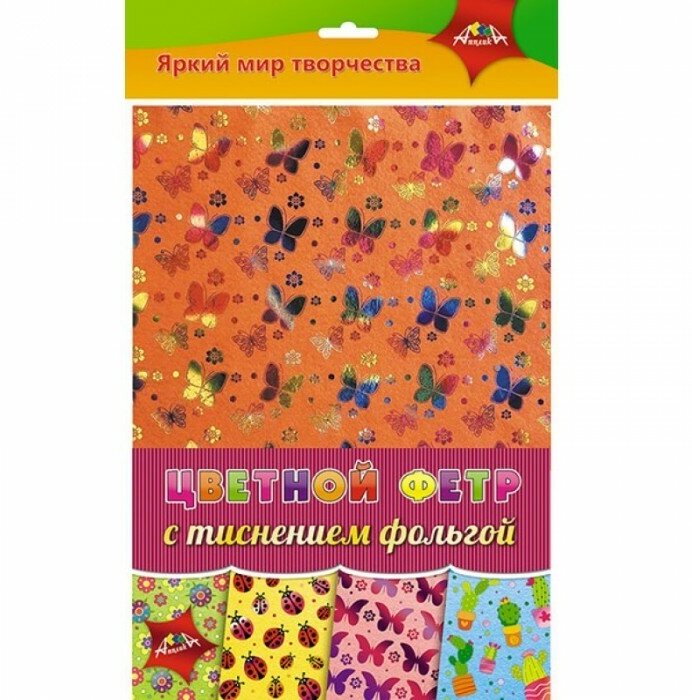 Фетр цветной с тиснением фольгой "Ассорти №1" (4 листа 4 цвета А4) (С3520-01); АппликА, 2019