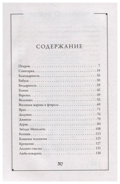 Это по сути байки -- о нас, о соседях, друзьях, но каждая история со смыслом. Особенно мне понравилось несколько рассказов. Первый, "Покров", -- случай из разряда чудес, когда девушка едва не попала в руки насильников, а отбил ее случайный прохожий. Второй, "Блины", о том, как одна благополучная семья взяла "шефство" над семьей соседей, которая оказалась в трудной жизненной ситуации и что из этого вышло. И конечно не могу не отметить замечательный рассказ "Паскуда последняя". Название, конечно, звучит резковато, но тот, кто прочитает рассказ, поймет, в чем его соль. А если говорит совсем упрощенно, то это история о том, что мужчины действительно умеют любить и заботиться.
