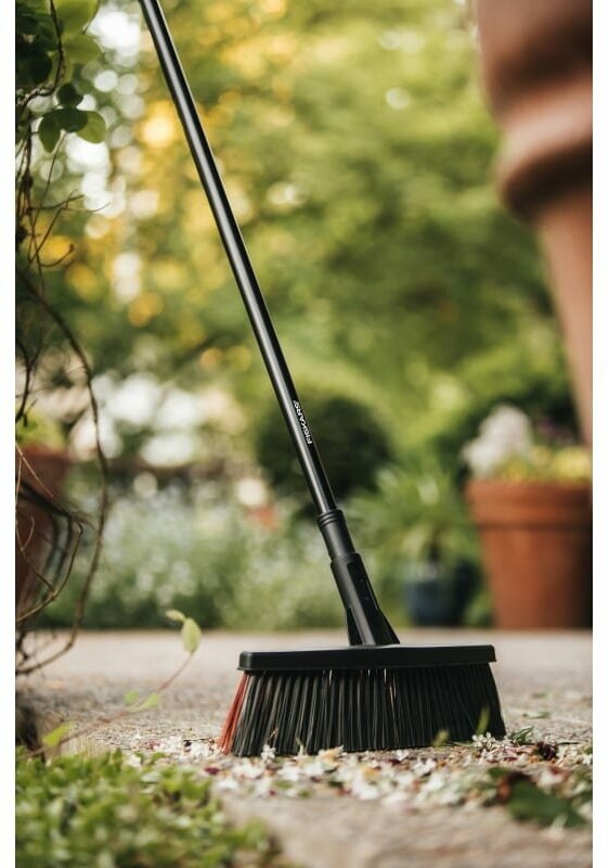 - Комбинация мягких и жестких щетинок Fiskars PowerClean™ прекрасно подходит для уборки различного мусора: от легкого и сухого до влажного и тяжелого. Щетинки не впитывают воду и другие жидкости, что подходит для уборки на улице
