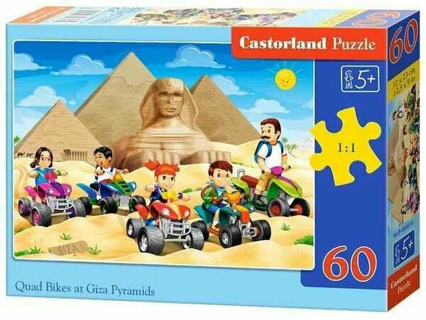 Пазл Квадроциклы у пирамид понравится тем, кто любит собирать сложные головоломки из нескольких частей. После того, как ребенок закончит сборку, он окажется в загадочном Египте и вместе с новыми друзьями покатается на мощном четырехколесном мотоцикле. Фрагменты пазла не имеют зазубрин и легко соединяются между собой. В результате получается яркая и идеально гладкая картинка. Она может стать оригинальным украшением детской комнаты, которое будет дарить тепло и позитивные эмоции.
